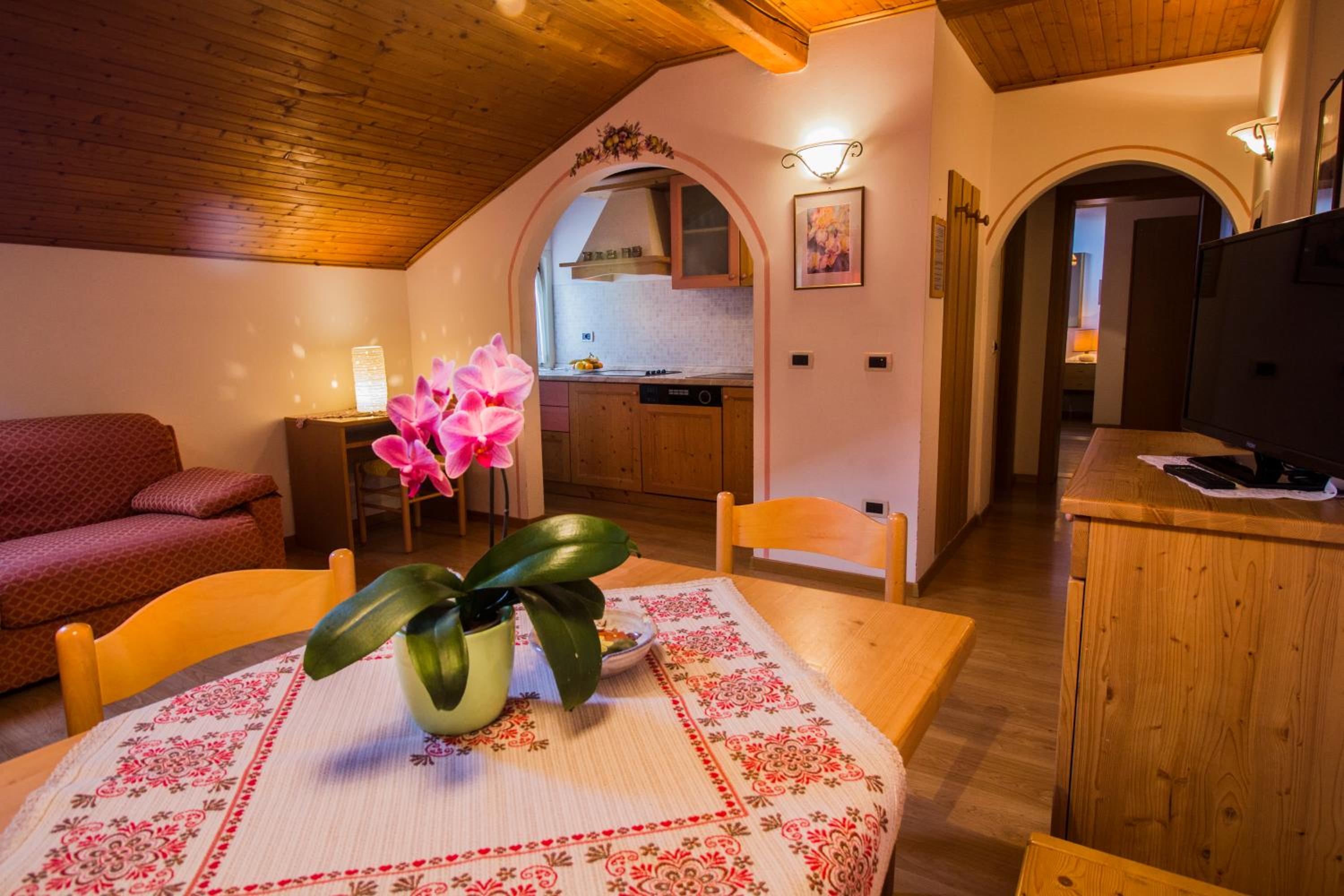 Residence Capriolo offers a luxurious stay in Lavarone, just a short walk from the ski slopes. Each accommodation includes a balcony, dining area, and a fully equipped kitchen with modern appliances. Enjoy the convenience of free WiFi, flat-screen TV, and complimentary toiletries in the private bathroom.