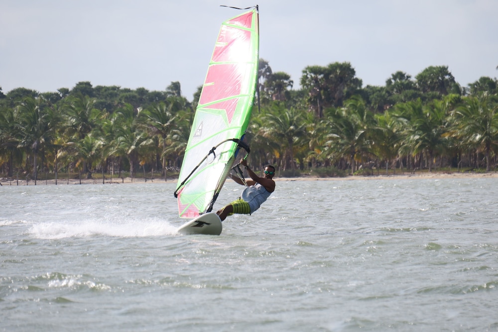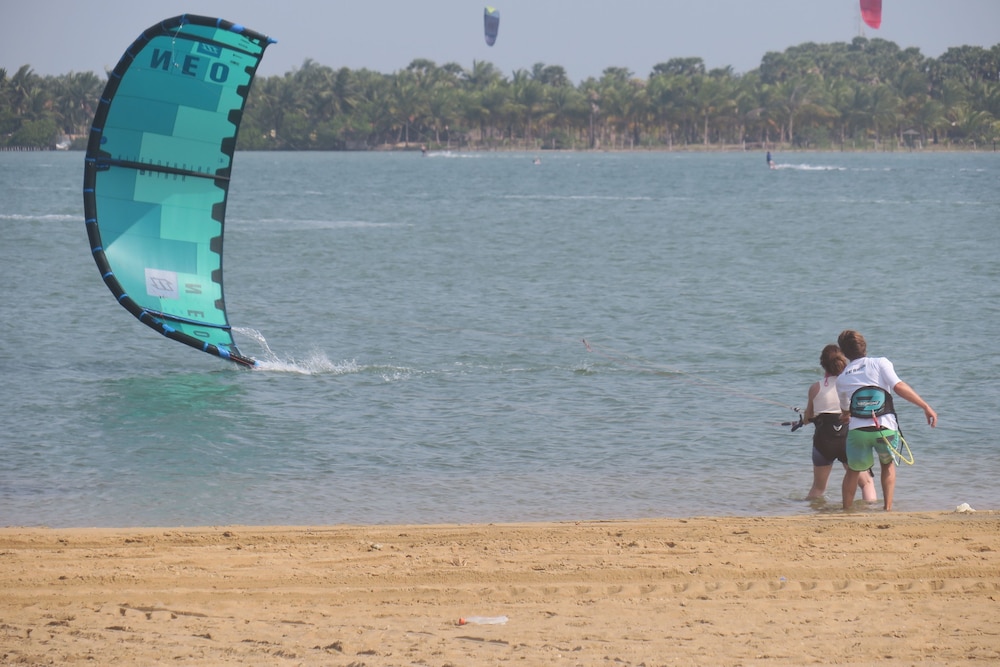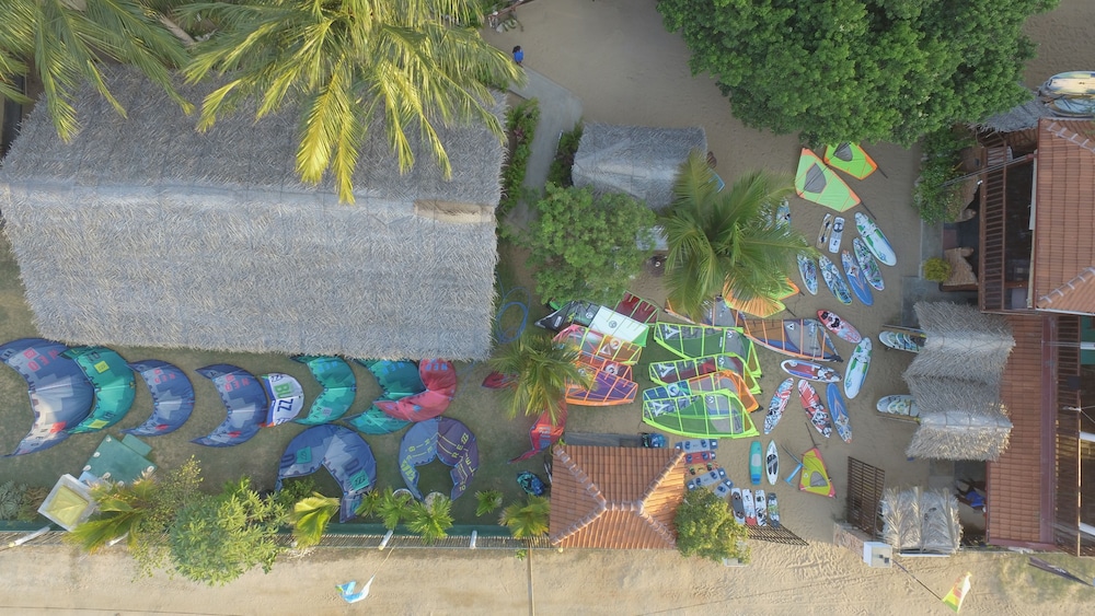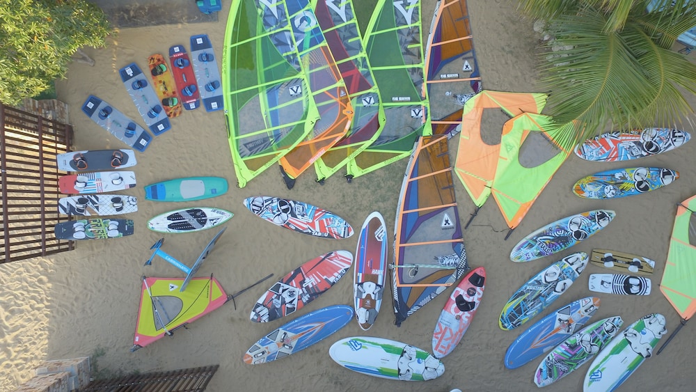 Rigtig god beliggenhed hvis du er til kite-surfing. Vi var overraskede over prisniveau for mad og drikke. I og med der ikke var andre steder i området virkede det lidt dyrt - især for unge mennesker. Men hyggelig atmosfære.