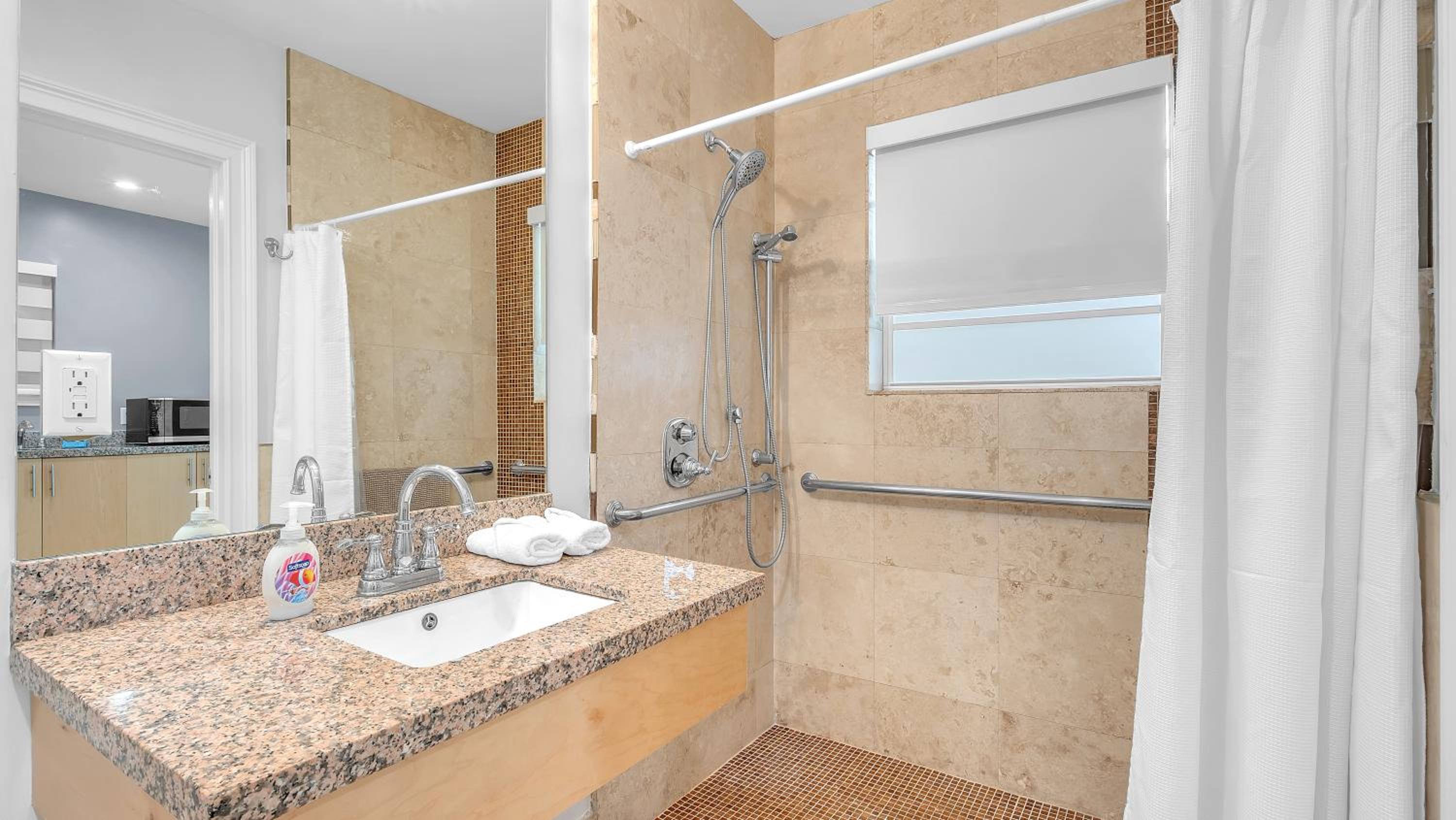 Great location. Everything we needed was within walking distance (beach, grocery store, and shopping center), but far enough where it’s quiet. Area was safe and quiet. Room was clean and spacious. 10/10 will check in again in the future.