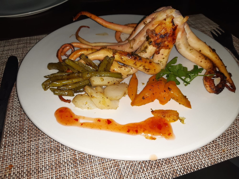 Our rooms were new and neat. The vue was magnificent, we looked out over a large part of the lagoon. The entire place is built on high ground, so even when dining you can keep an eye on the wind and water conditions in the lagoon.