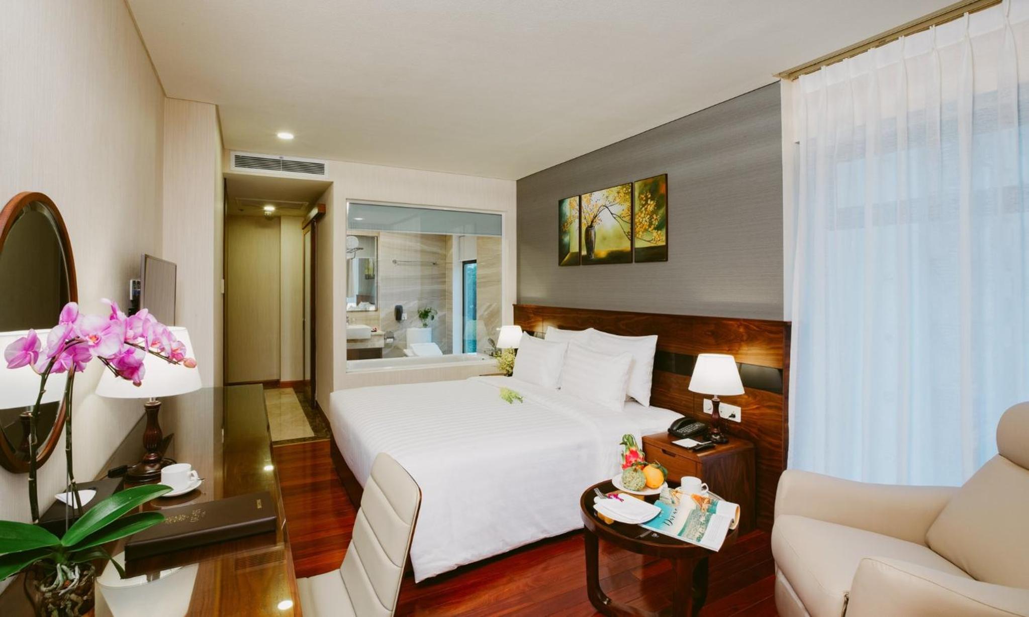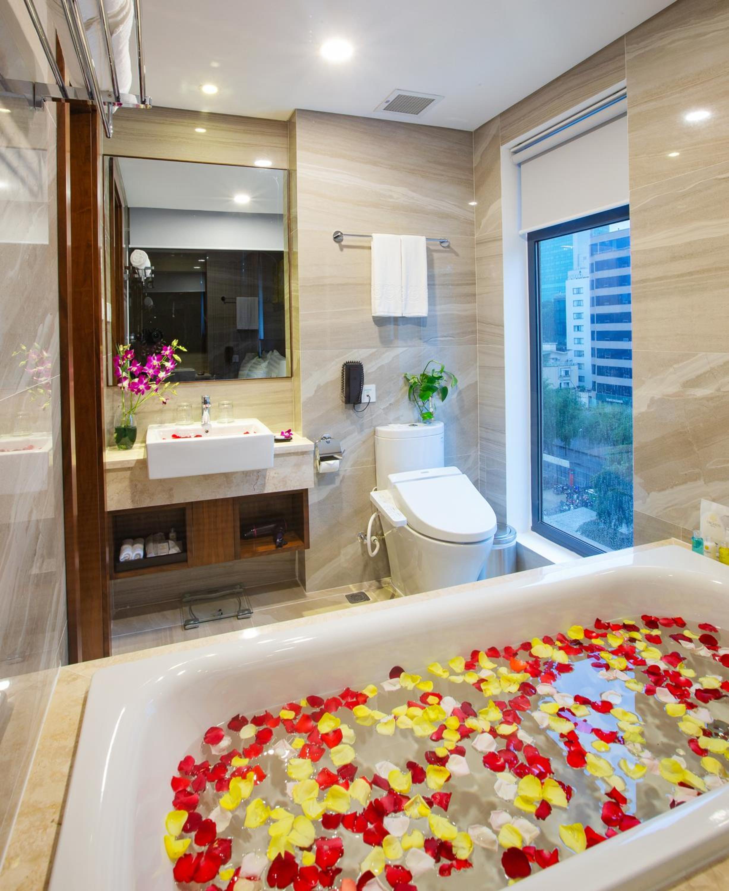 Orchids Saigon Hotel, located in the heart of Ho Chi Minh City, offers elegant air-conditioned rooms with modern amenities such as flat-screen TVs and private bathrooms.