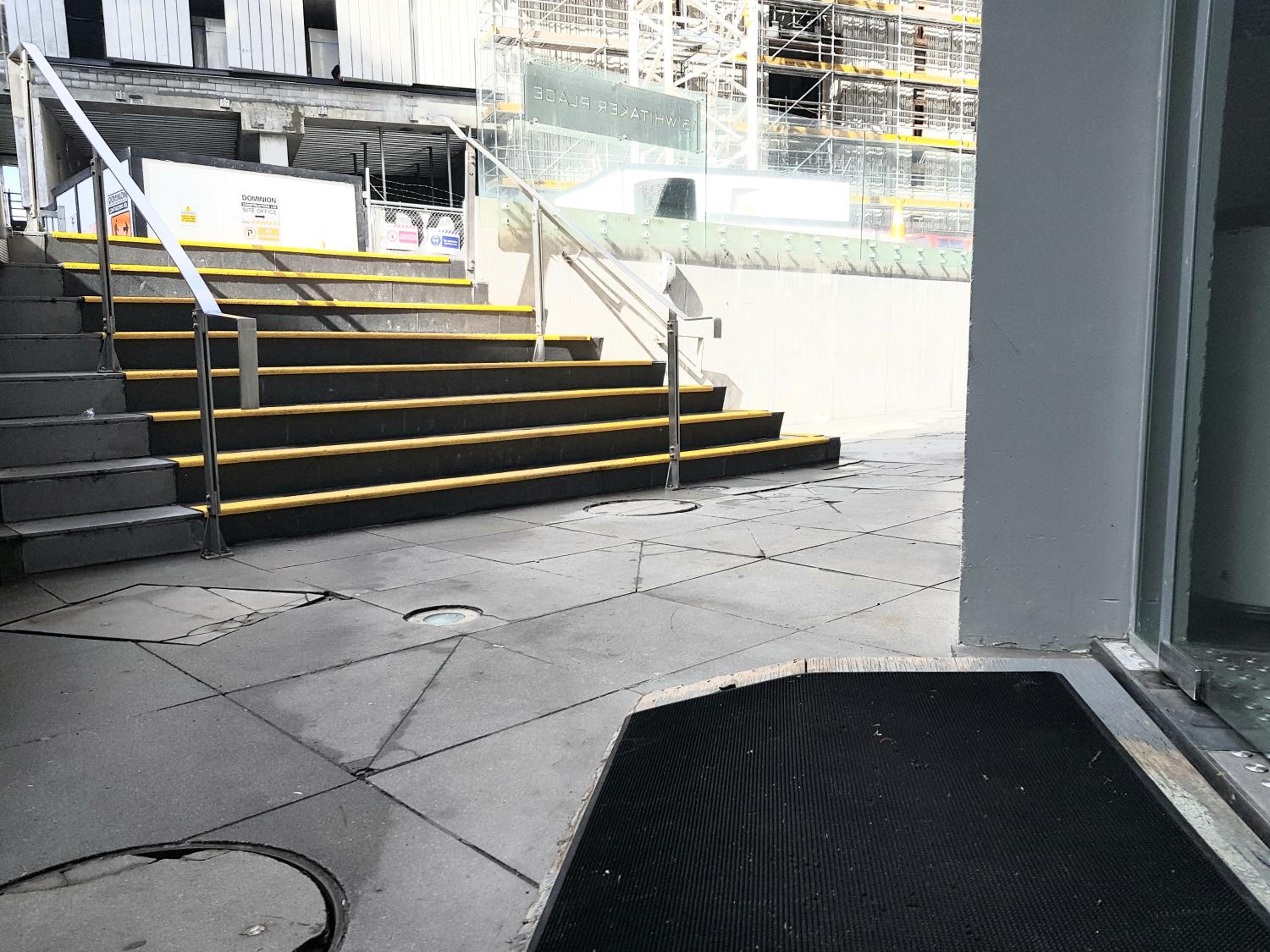 bones left on multiple levels of the staircase, fire hose fittings used as ash trays and vomit on the staircase wall that had dripped down 3-4 levels.