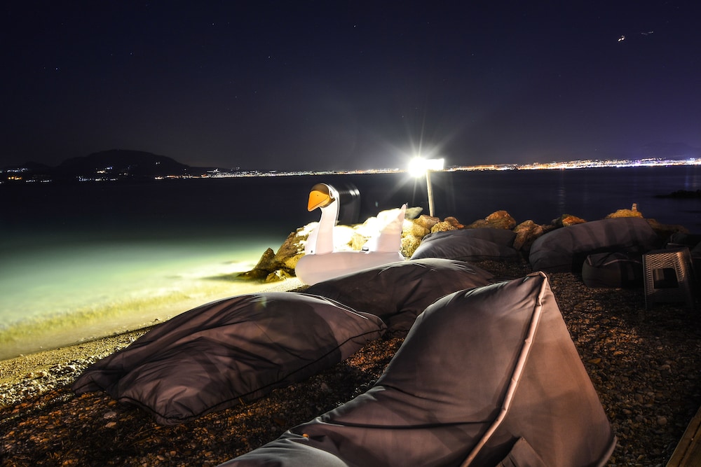 What an atmospheric place. We arrived with the wind coming off the sea and the waves crashing on the shore right in front of the hotel. Our room had a balcony overlooking the beach. Downstairs the hotel has comfortable seating and a very large terrace with bar. Breakfast was simple but adequate. Very nice hosts. It is an out of the way spot so you definitely need your own transport. A 7 minute drive towards Corinth brings you to local amenities and cafes. Air conditioning provides cooling and heating. Beds were comfortable and everything working and clean. An affordable and enjoyable one night stay in the middle of December