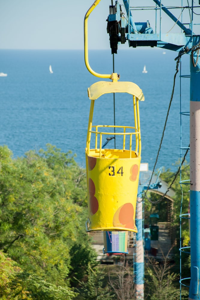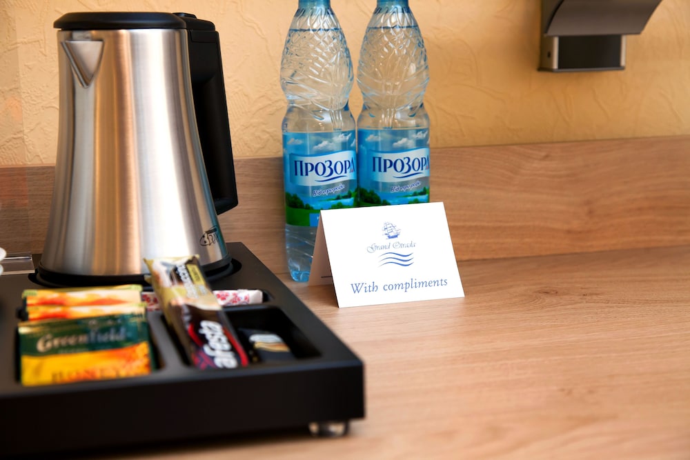 Another Ukrainian deceiving listing. They wrote beachside. Lol,,, minimum 500 meter walk down a cliff ! Dont plan on walking back !! And they boast cable cars, that dont work most of the time, lol. Not in operation my whole 3 day visit anyway, probably the whole winter.Check in a joke, belittling to say the least. CHECK OUT EVEN WORSE ! I called from my "grand suite " (lol) 10 minutes before because I have the experience to know they must run up and check the room to make sure you didnt rob them before they will let you out of the locked parking lot but the girl said she cant check me out "must come to reception " lol...I thought well I signed a 4 page letter when I checked in, you have my credit card on file, my passport, my guest's passports what else do you want..Location: View from my "Grand Suite, (really, the king grand suite, there best room ) was of an alley way that leads to the cliff's with a torn up road, overgrown weeds, gang writing all over these old houses and buildings balcony's falling off the sides of these buildings there so old and very decrepit,, so all in all, a disgusting view ! Building itself is only new. Funny they got the marketing down right though, you read a listing and it says "Grand" within the name and you think Grand, well folks this place had ZERO paintings, zero bouquets in this grand place and a ridiculous design ! lol...My room..It was the king suite and it is nothing but big. Two rooms and a big balcony closed in on three sides with this cheap see thru plastic because the view is terrible (ac units etc) and the entire unit consisted of 1 bed, 1 loveseat, and 1 desk in each room ! lol, no paintings no nothing ! 75 sq. meter room ! And yes they do have coffee makers but they charge for each cup, lol....Its part of there mini bar system, lol...Restaurant, yep they have one. They called me at 8 and asked me if I was going to have dinner there and I knew why and so I asked the sweet girl " why you asking me " do the kids want to go home " ...lol, I was right, she said yes..I didnt bother with the free breakfast, I have enough free breakfasts in Ukraine to skip them..Sleep quality ,, booooo.. I dont like 50 count sheets and sponge $2 pillows !! Lastly, during conversation one of my guests mentioned he really liked this hotel, and I thought it was because he in fact is Ukrainian. No offense, but no experience either. So if your from the west, skip this place, if your Ukrainian or Russian, you will be fine..