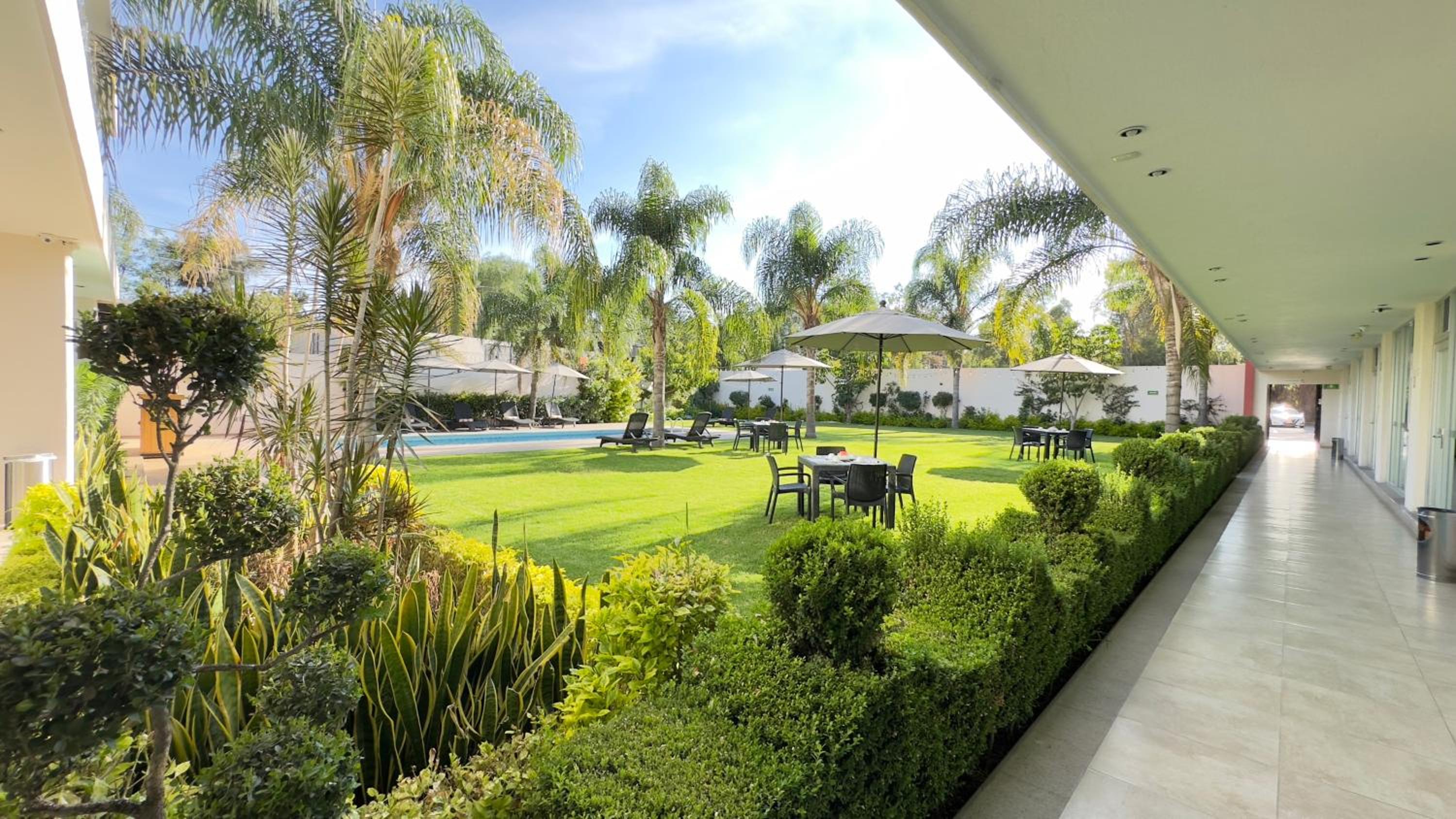 Hotel Quinta Tequisquiapan boasts a refreshing outdoor swimming pool surrounded by a lush garden, offering a tranquil oasis for relaxation. Guests can unwind under the sun, take a refreshing dip, or simply enjoy the serene ambiance of the outdoor area.