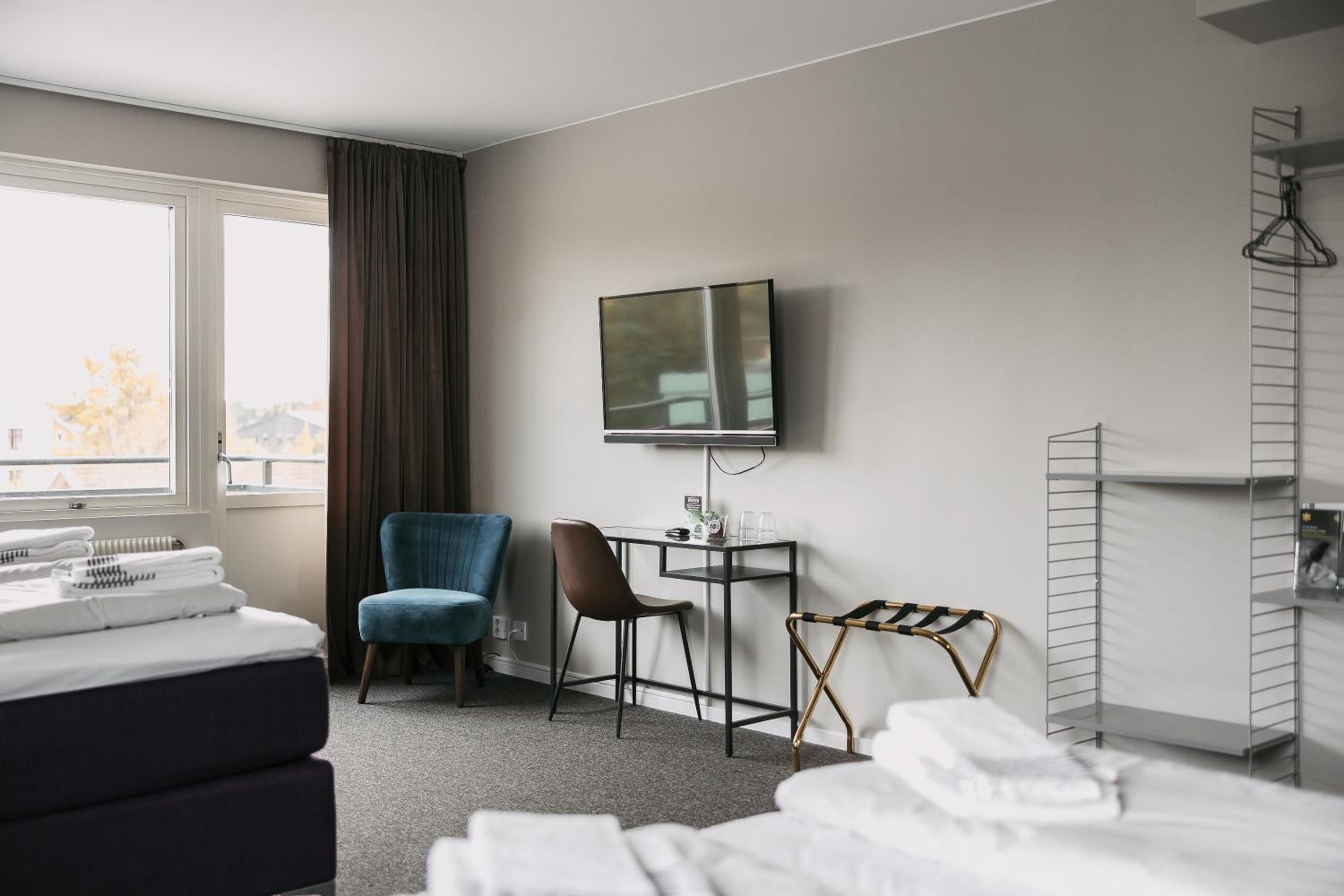 BriQ Hotell offers a luxurious stay in Hova with modern amenities and comfortable rooms. Each unit is equipped with a flat-screen TV and a cozy seating area for relaxation.
