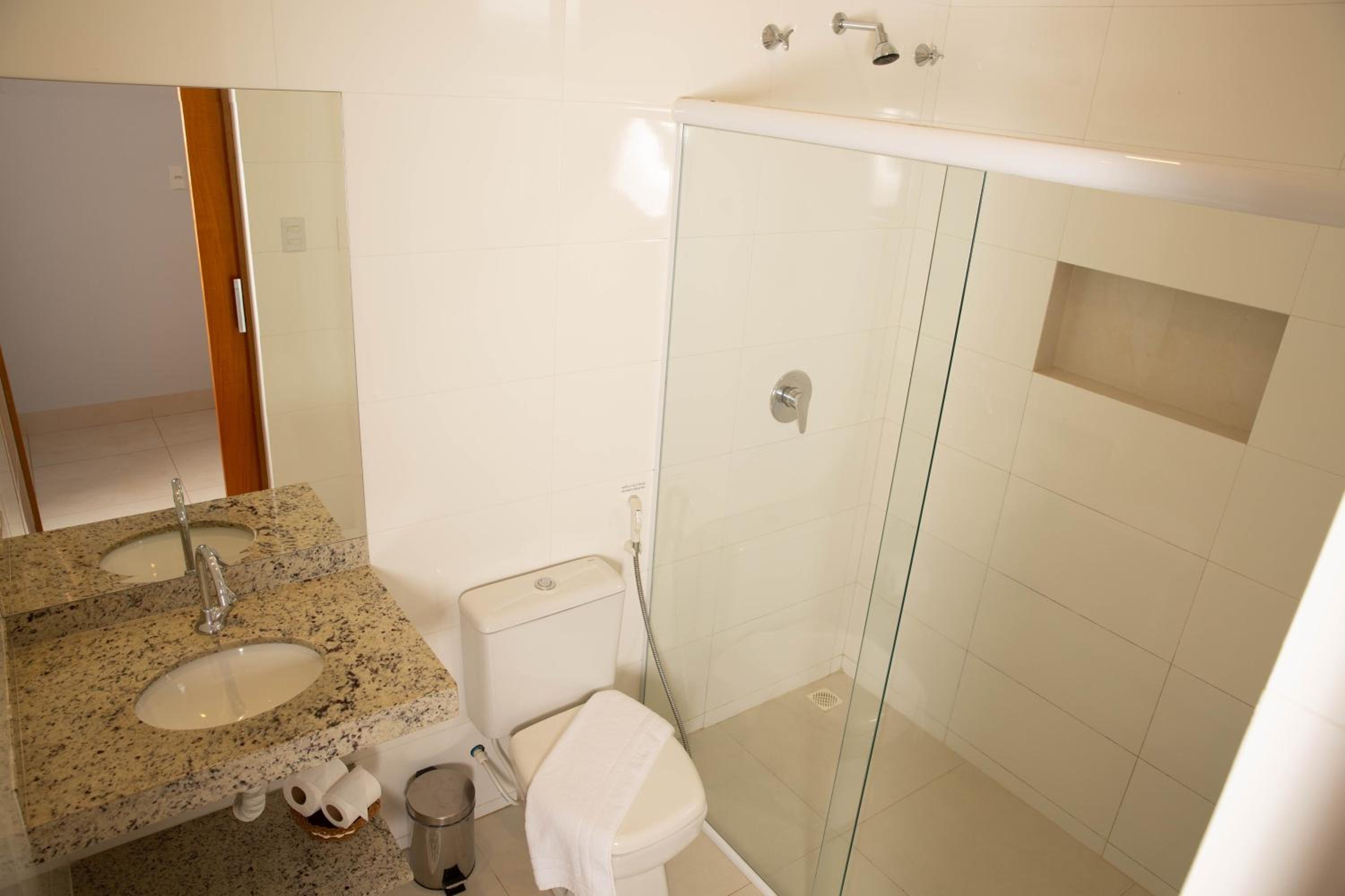 Gosto dos quartos, são novos, modernos, tanto o quarto quanto o banheiro são bem amplos, até mesmo o box do banheiro é grande.