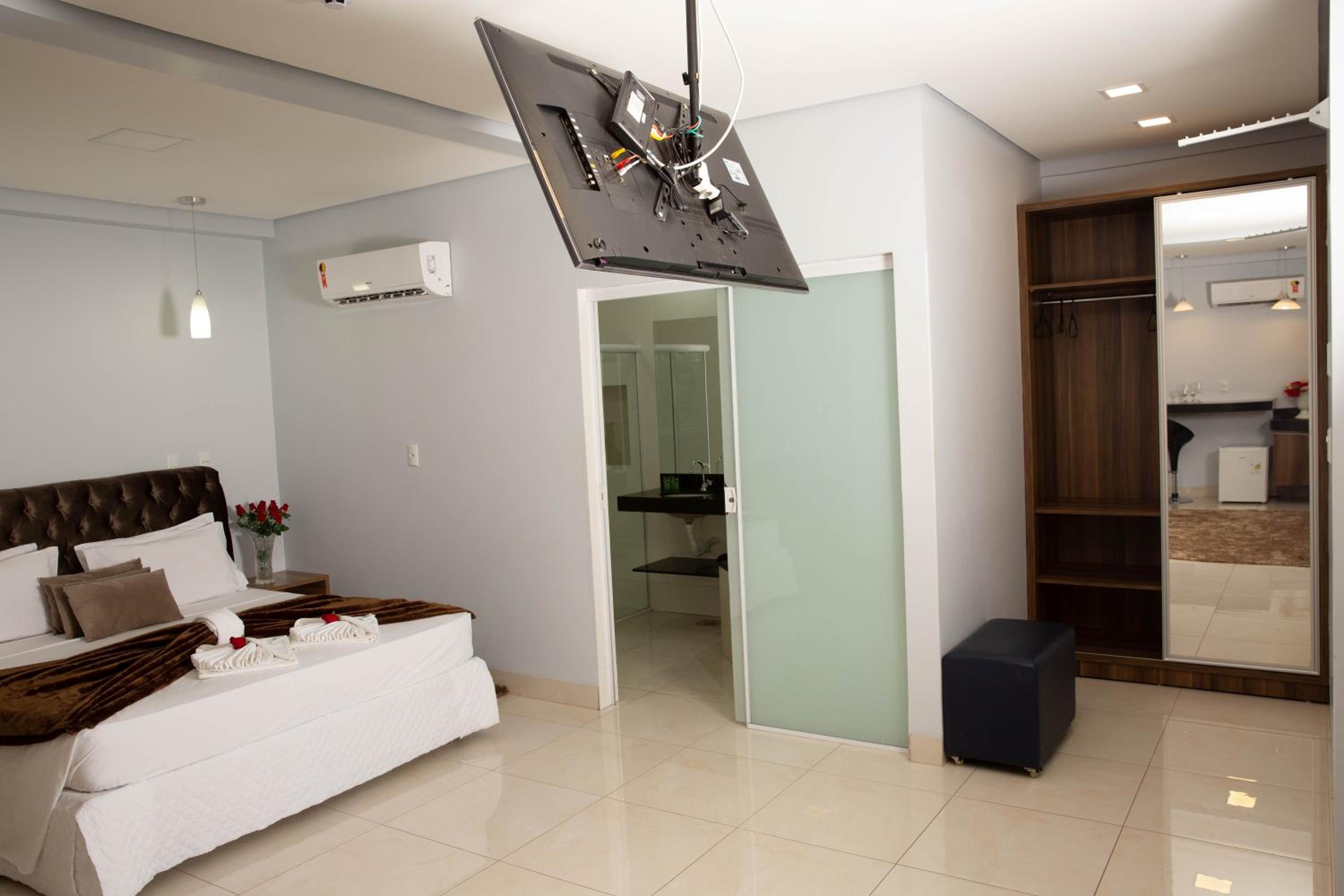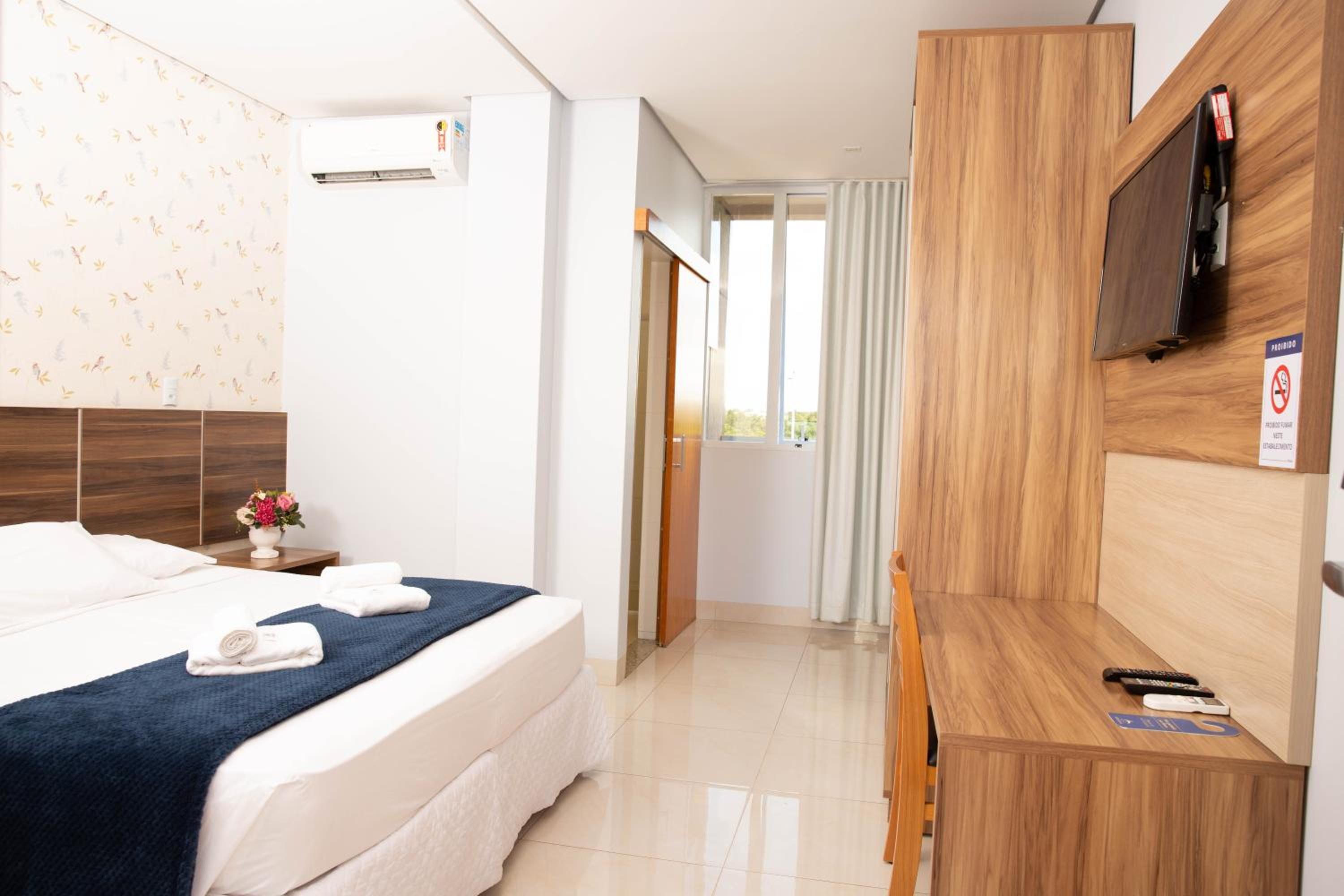 The Hotel Araguaia in Palmas offers bright rooms with king-size beds and large French windows, providing ample natural light. Each room is equipped with air conditioning and a TV for utmost comfort during your stay.