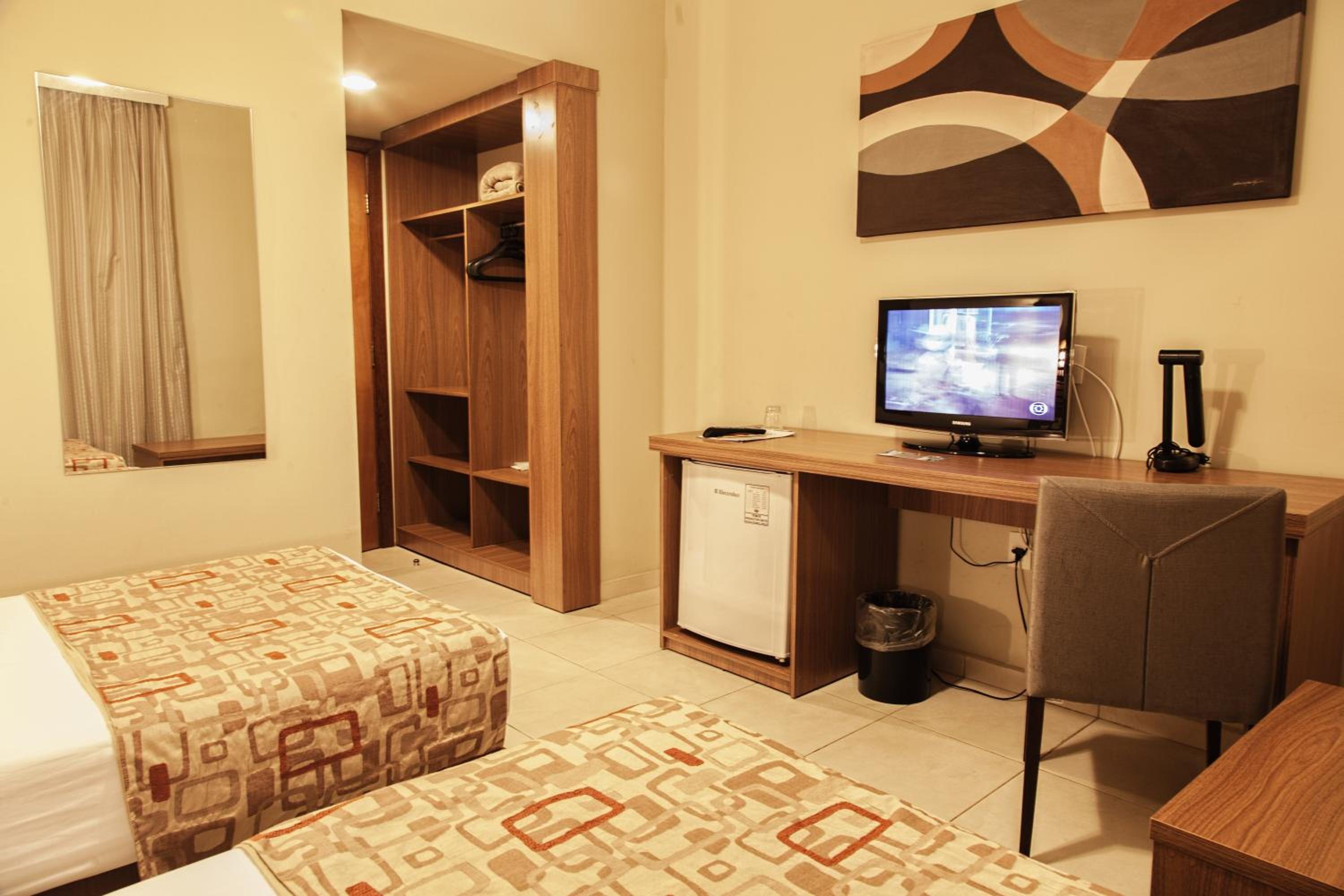The rooms at Class Hotel Alfenas are equipped with a flat-screen TV, minibar, and a private bathroom. Featuring parquet floors, each room includes a wardrobe, desk, and telephone for the convenience of our guests. Selected units also offer air conditioning for added comfort.