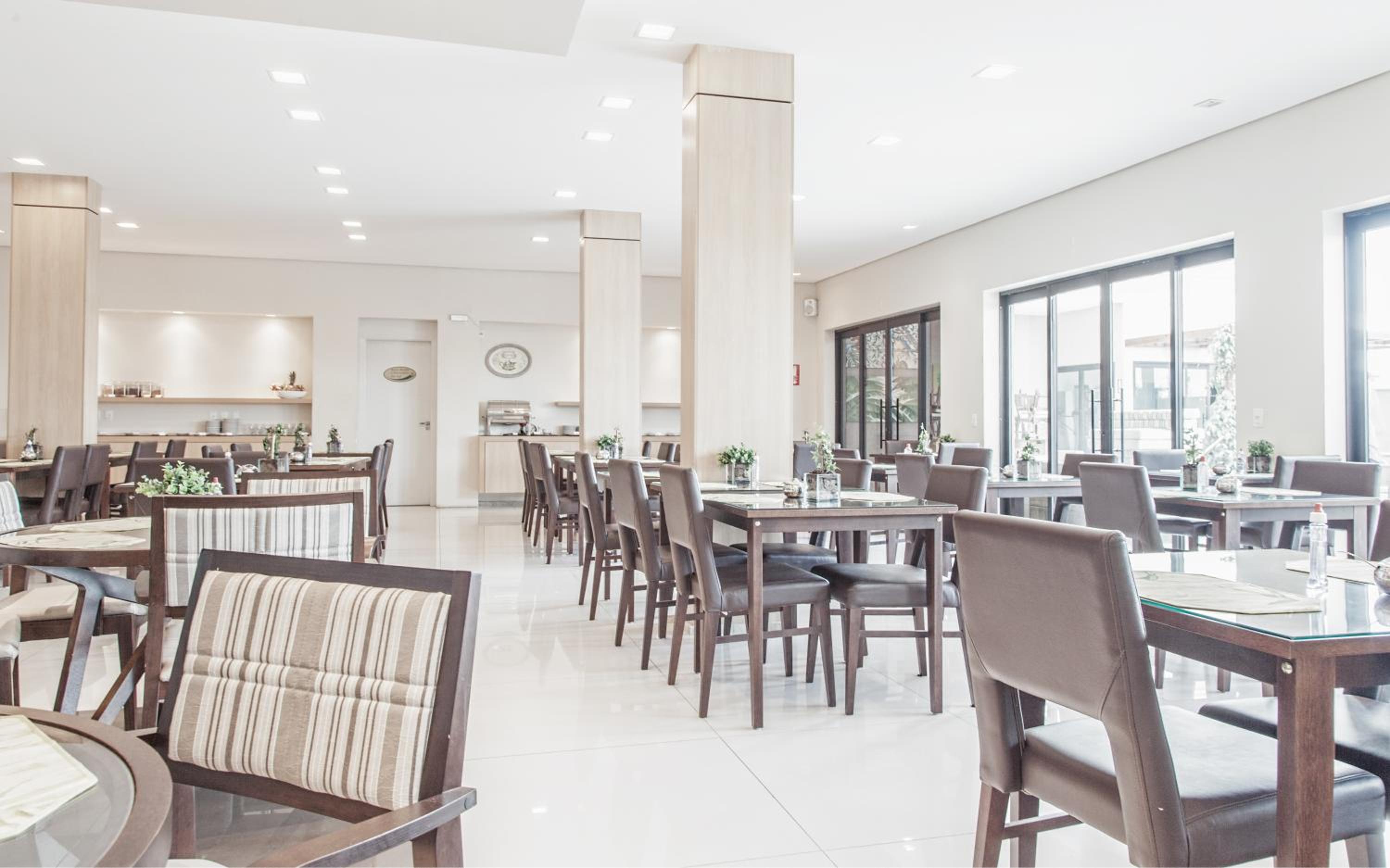 o café da manhã é muito bom com diversas opções, o estacionamento para guarda do veiculo muito bom e os aposentos de ótima qualidade e bem arrumado.