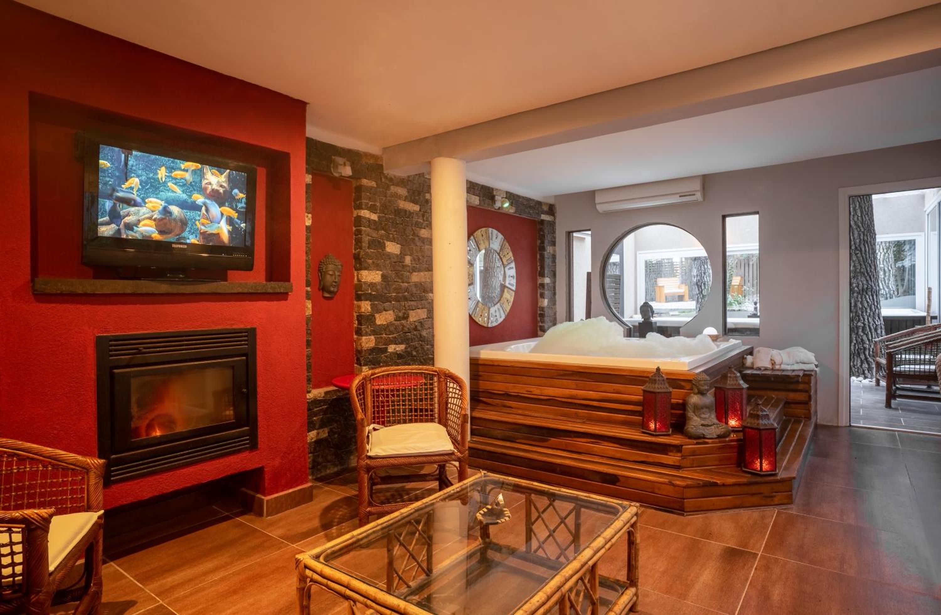 Indulge in plush rooms with spa baths and stylish decor. Enjoy the comfort of balconies overlooking the garden, plasma TVs, and air conditioning in every room.