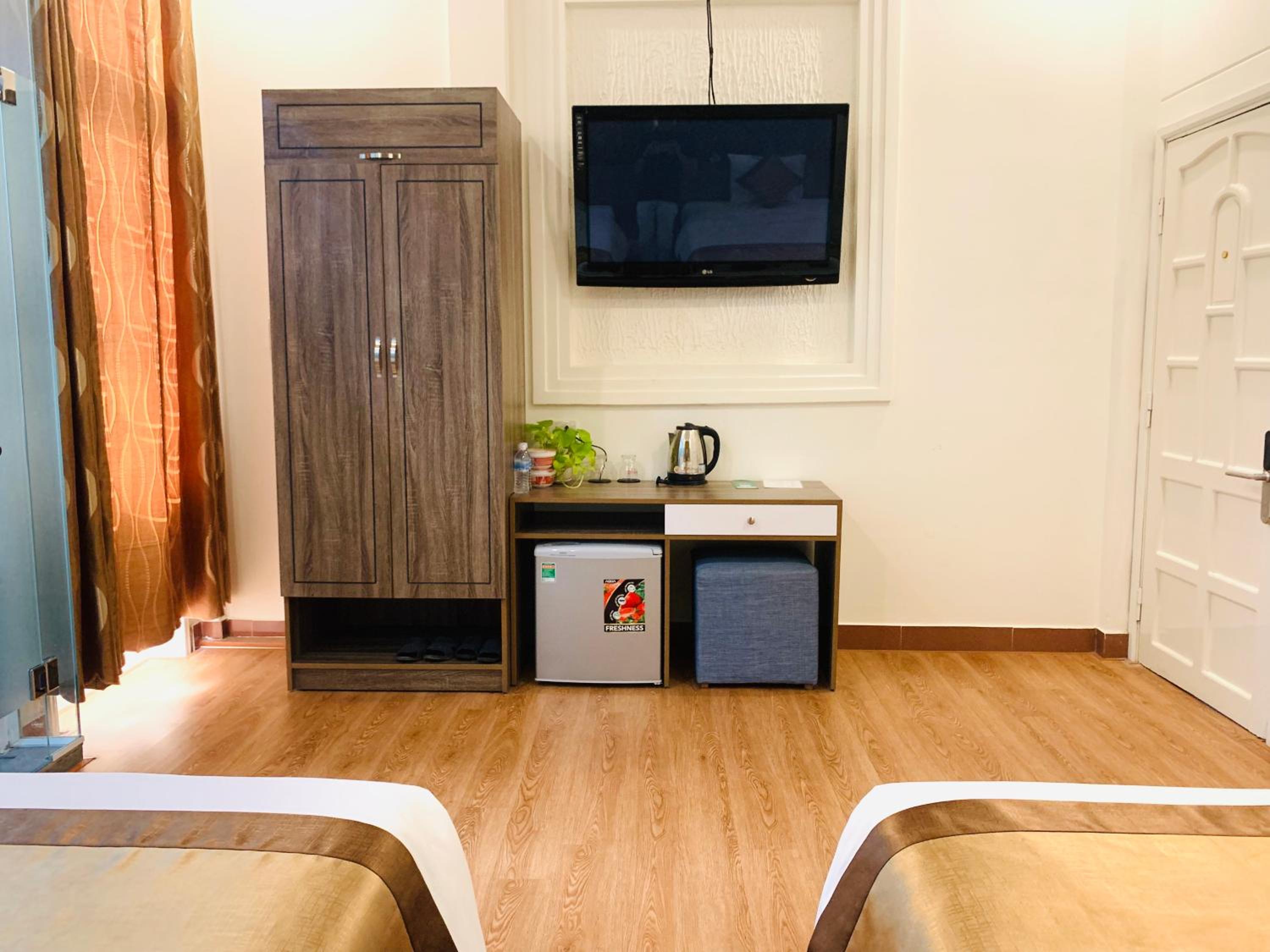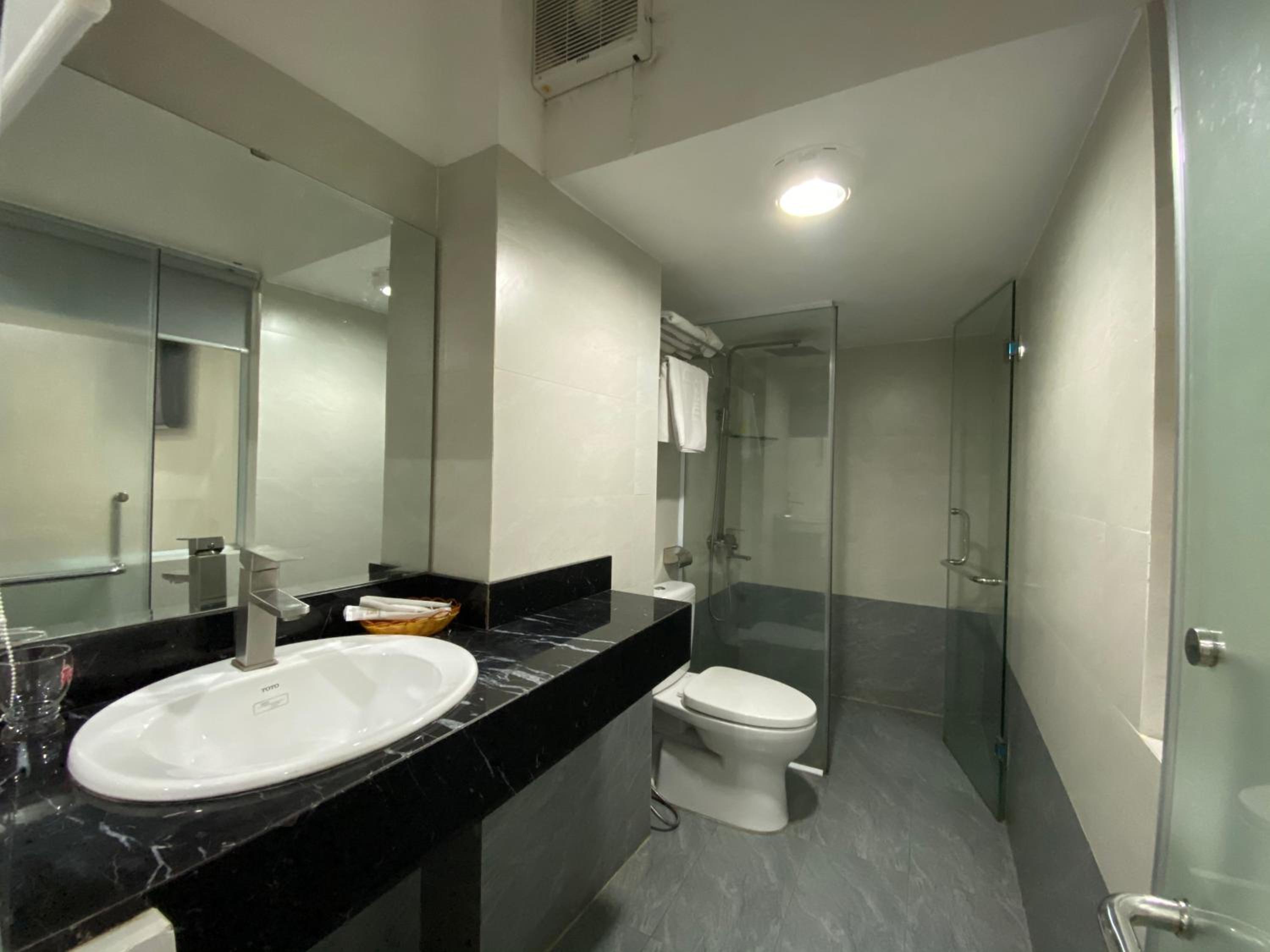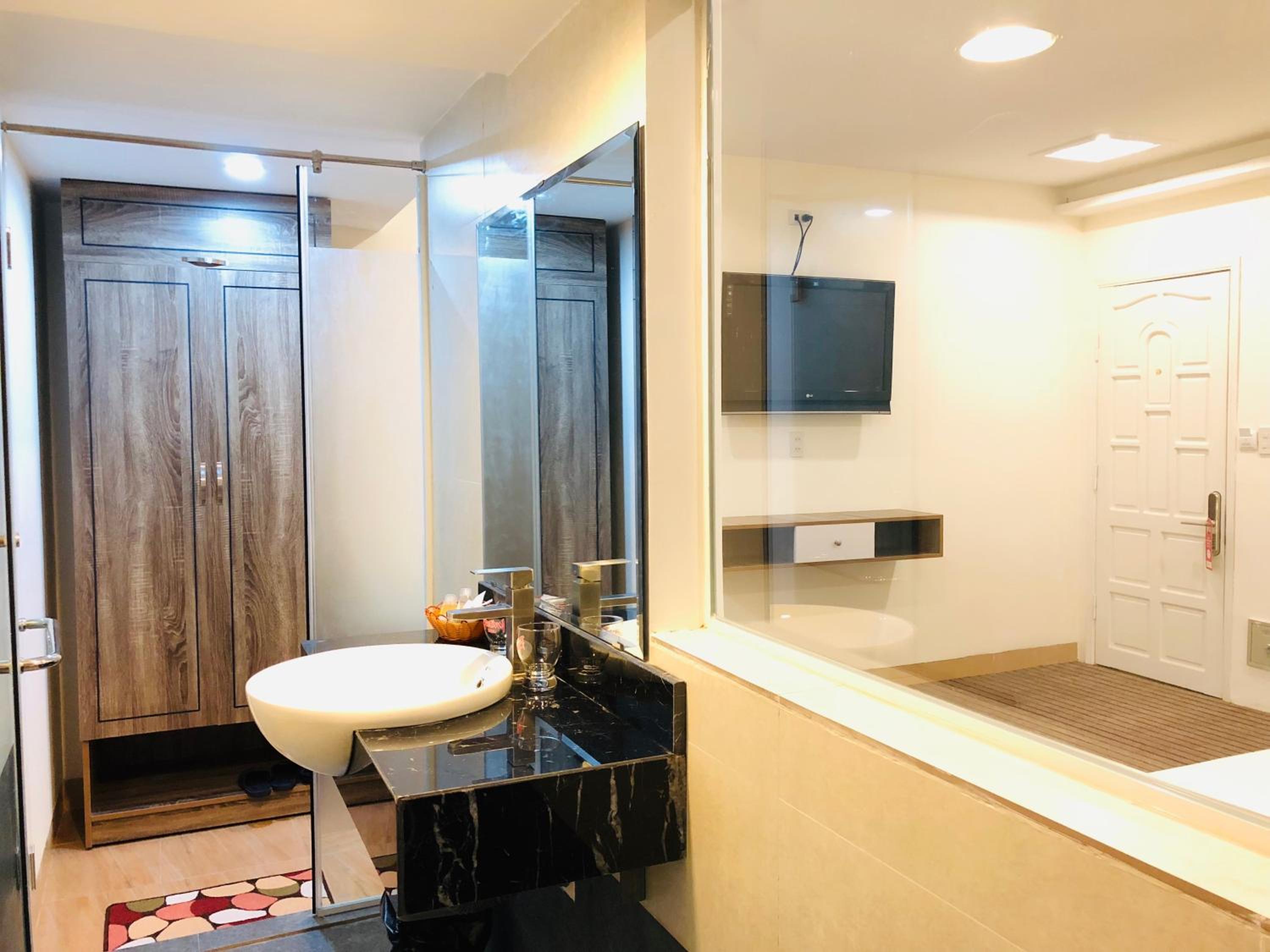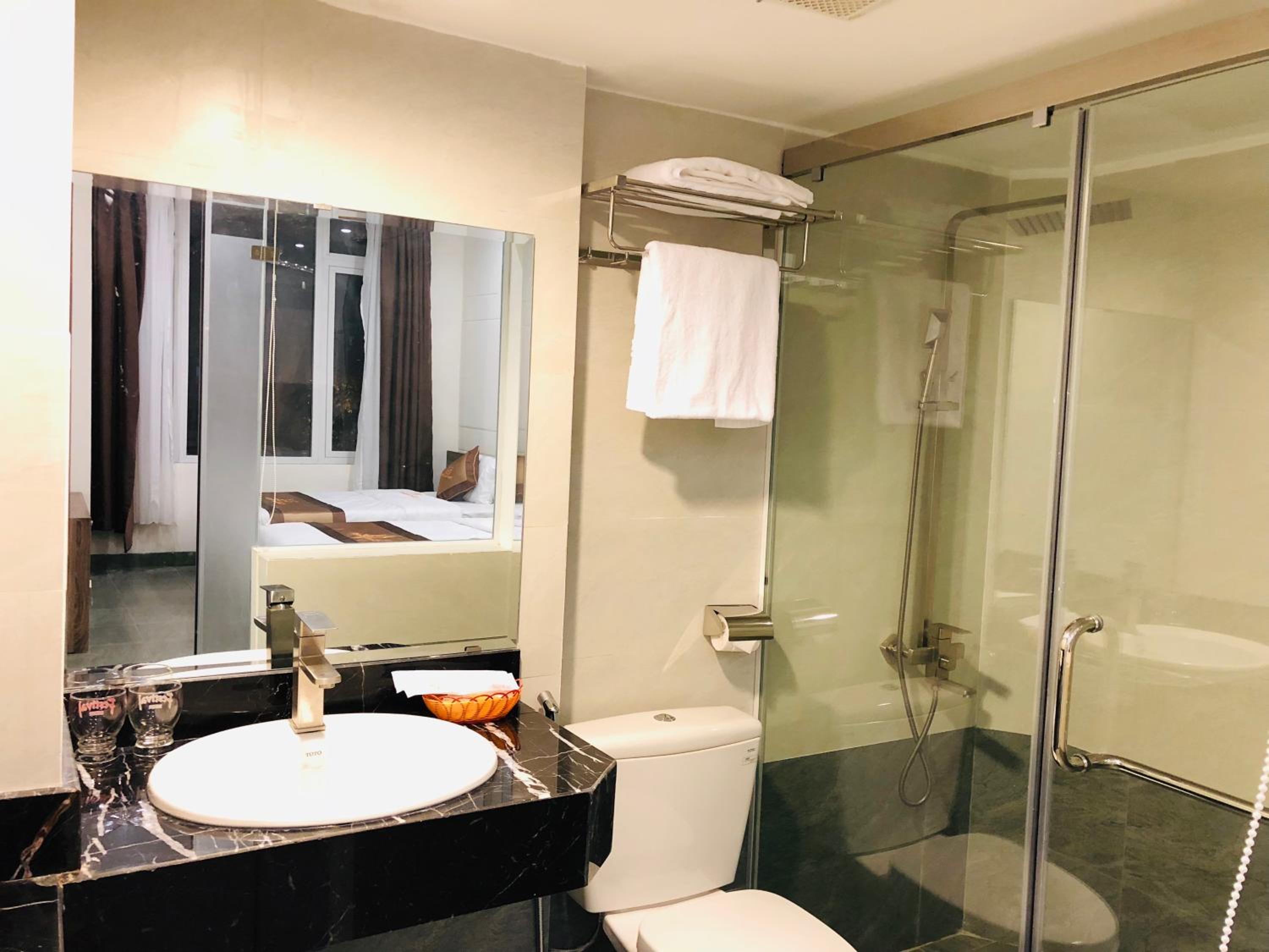 Nhà tắm không được sạch sẽ, hơi xuống cấp và có mùi. Khăn tắm cũ và có vết ố. Khi khách có nhu cầu dùng bàn là thì ksan bắt khách xuống tầng 1 để đứng là quần áo, k cho mang lên phòng vì sợ khách làm cháy, cực kỳ bất tiện. Coi khách như trẻ con vậy. Chị lễ tân không niềm nở, khách đi ra vào mặt lạnh tanh.