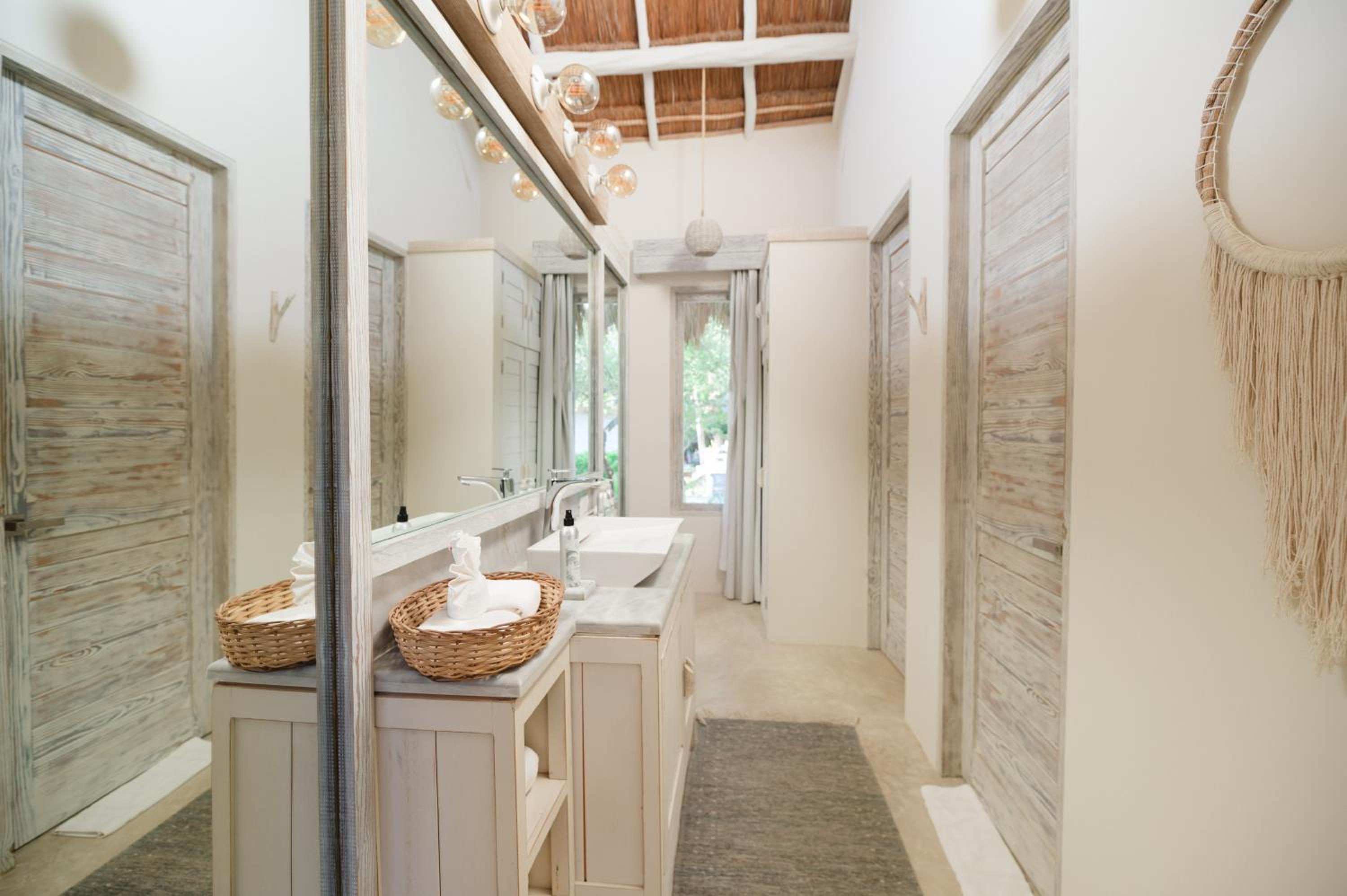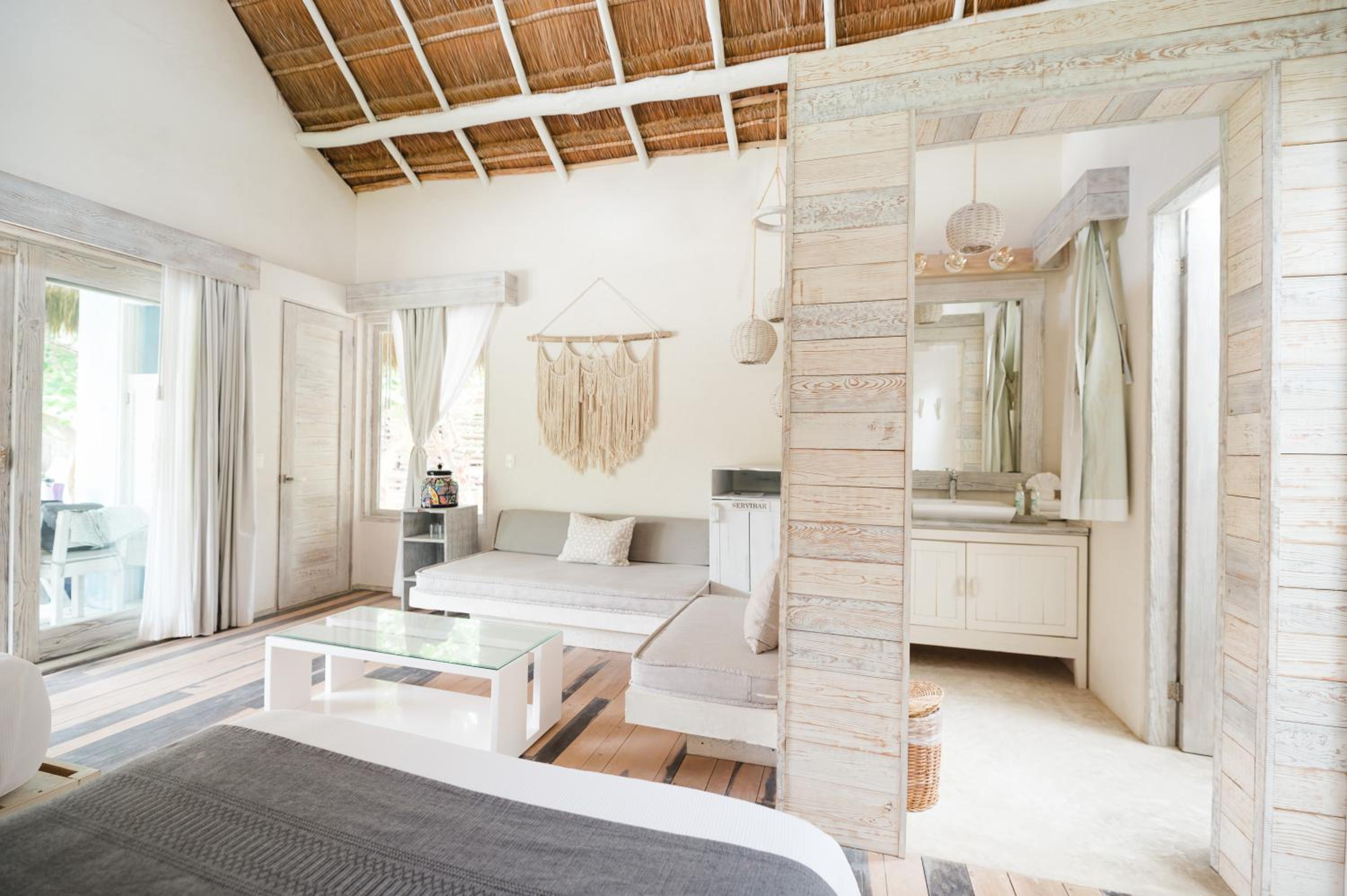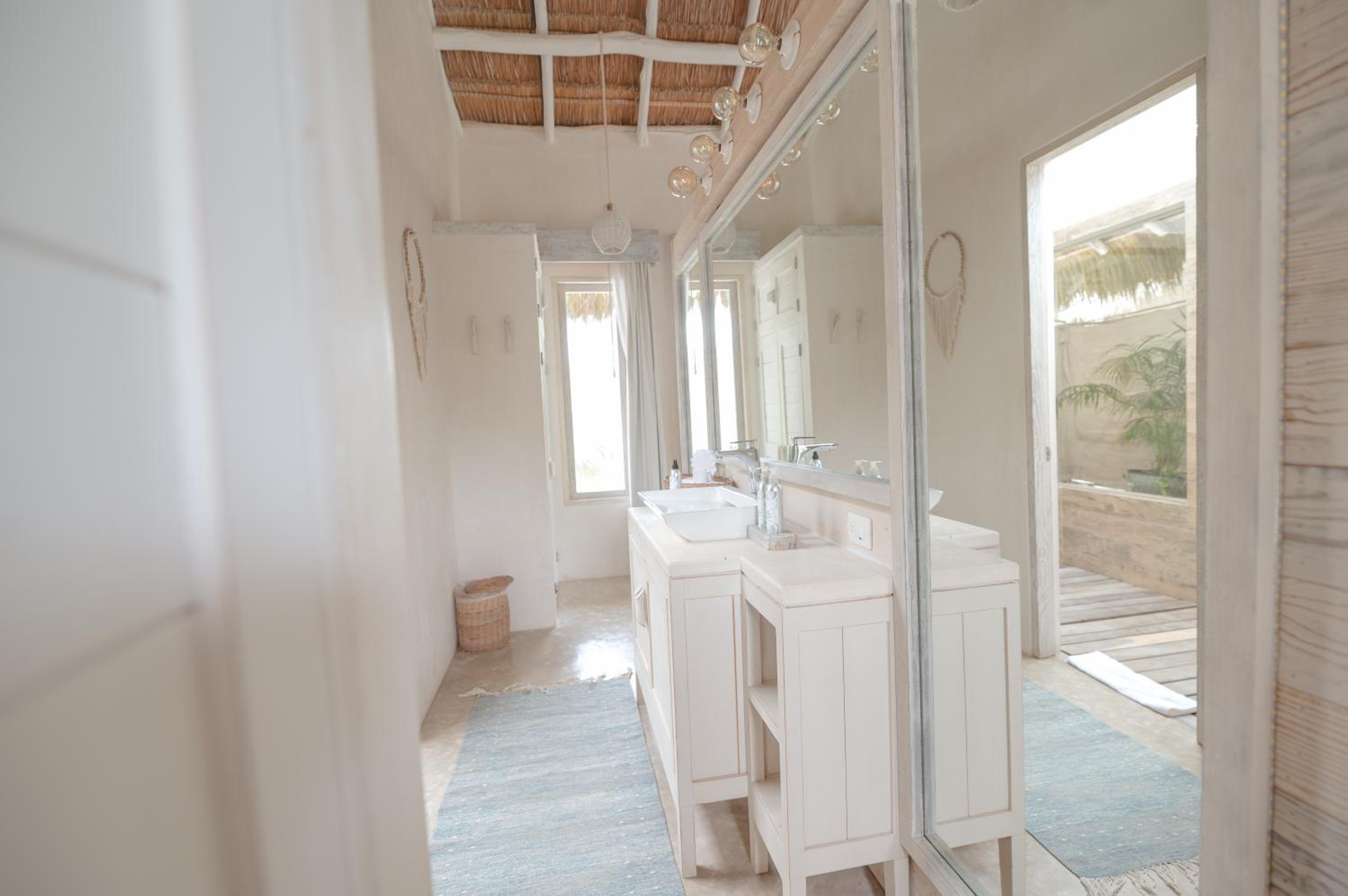 Il luogo in cui è posizionato è speciale. Tutte le casette sono bellissime e con il necessario, patio esterno con divano letto, tavolino, doccia esterna e doccia interna. Si “respira” Relax già dalla reception! altro pregio, essere dentro la riserva di Tulum, nel silenzio, immerso nella natura e con il suono delle onde.. speciale.