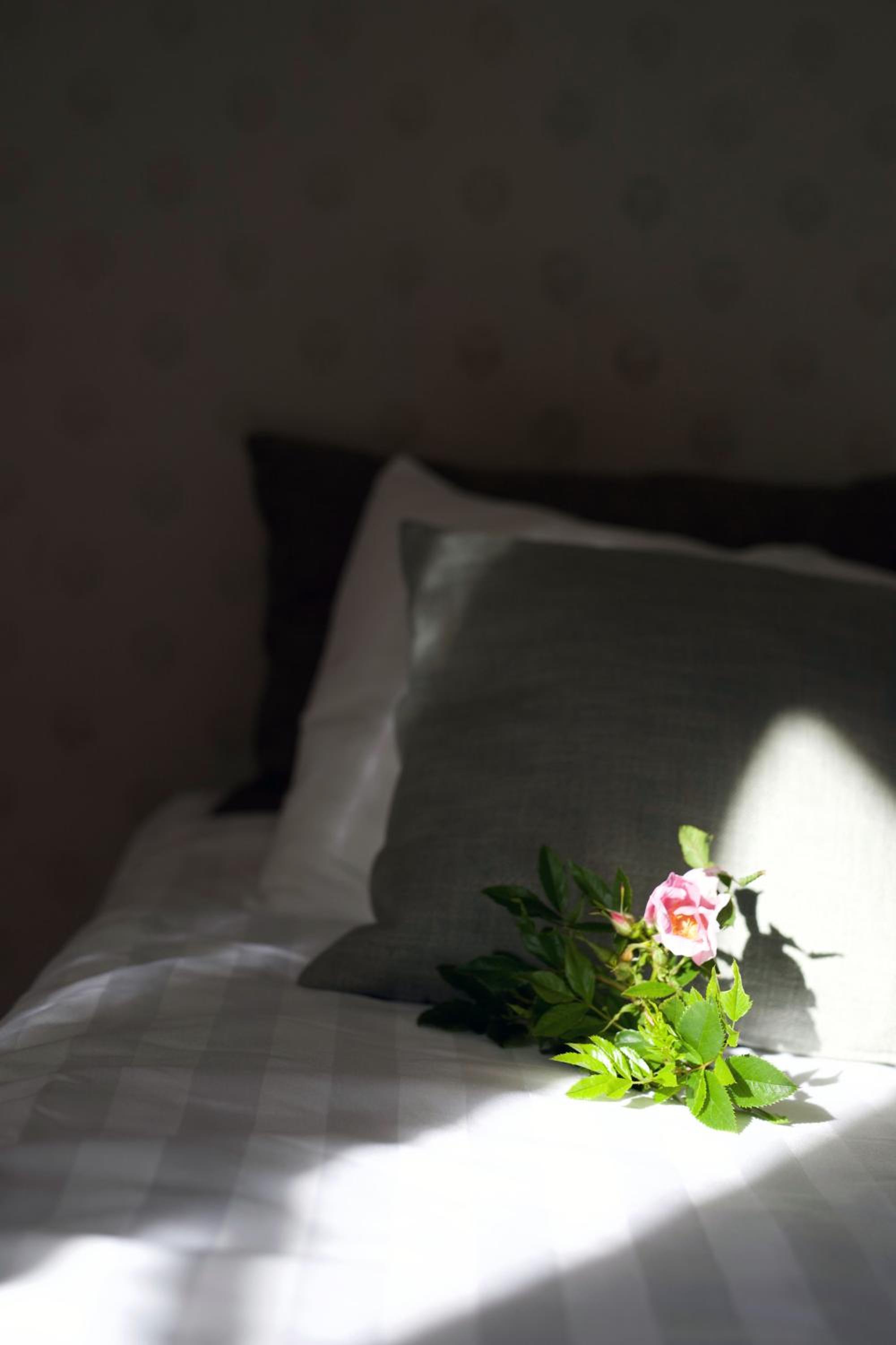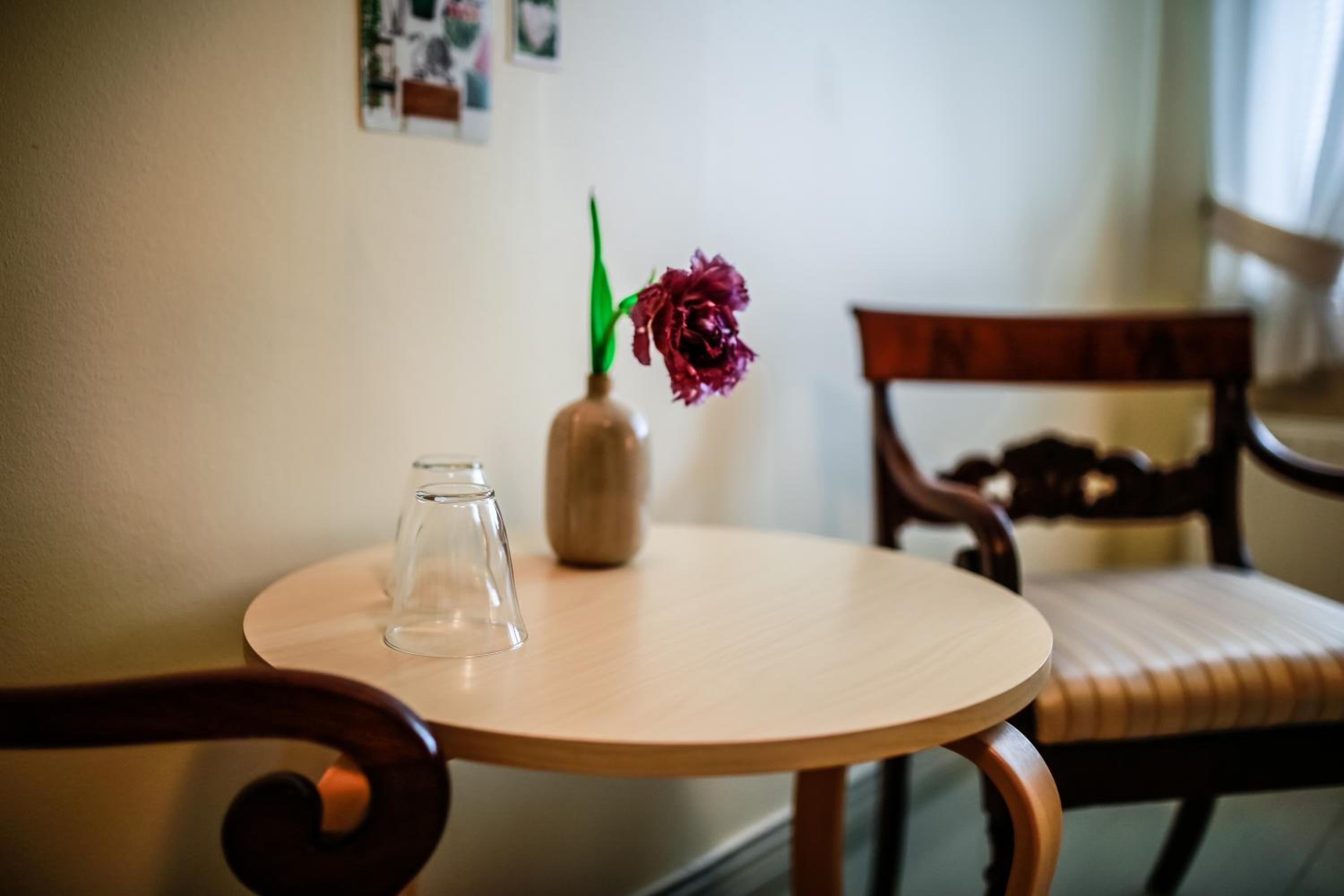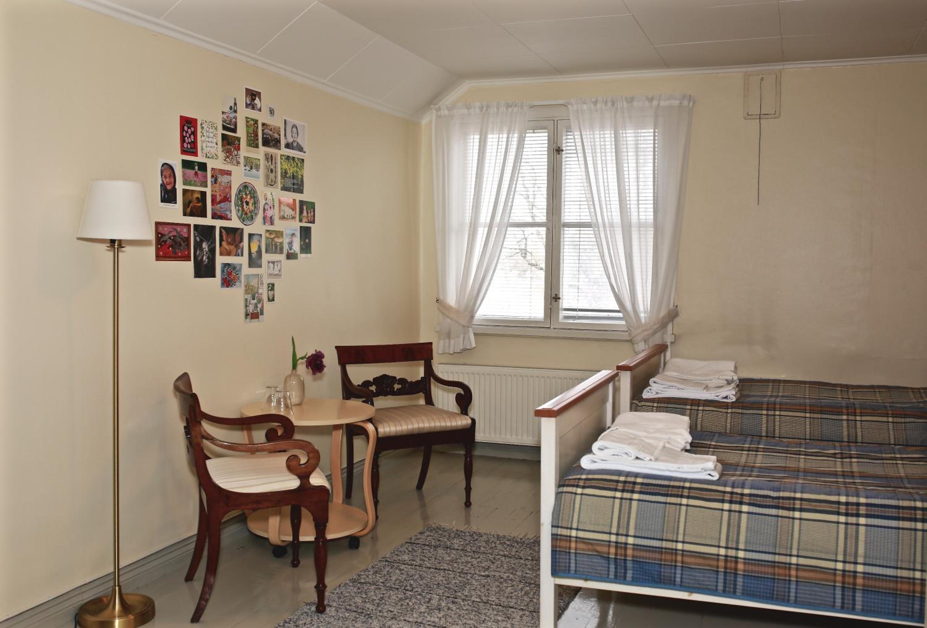 Punaiseen taloon oli aika moinen nousu näin jalkavaivaiselle. Huoneeseen kuului seinän takaa toisten majoittuneiden keskustelut. (Onneksi sanoista ei saanut selvää.)