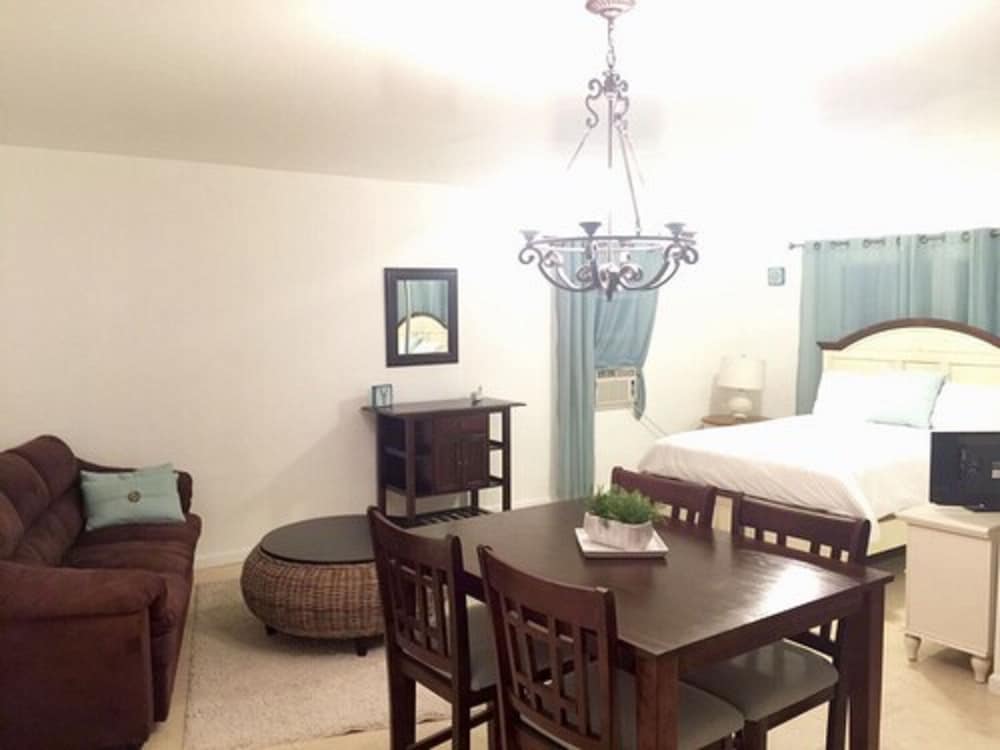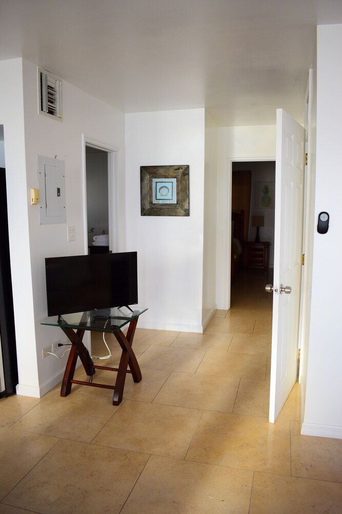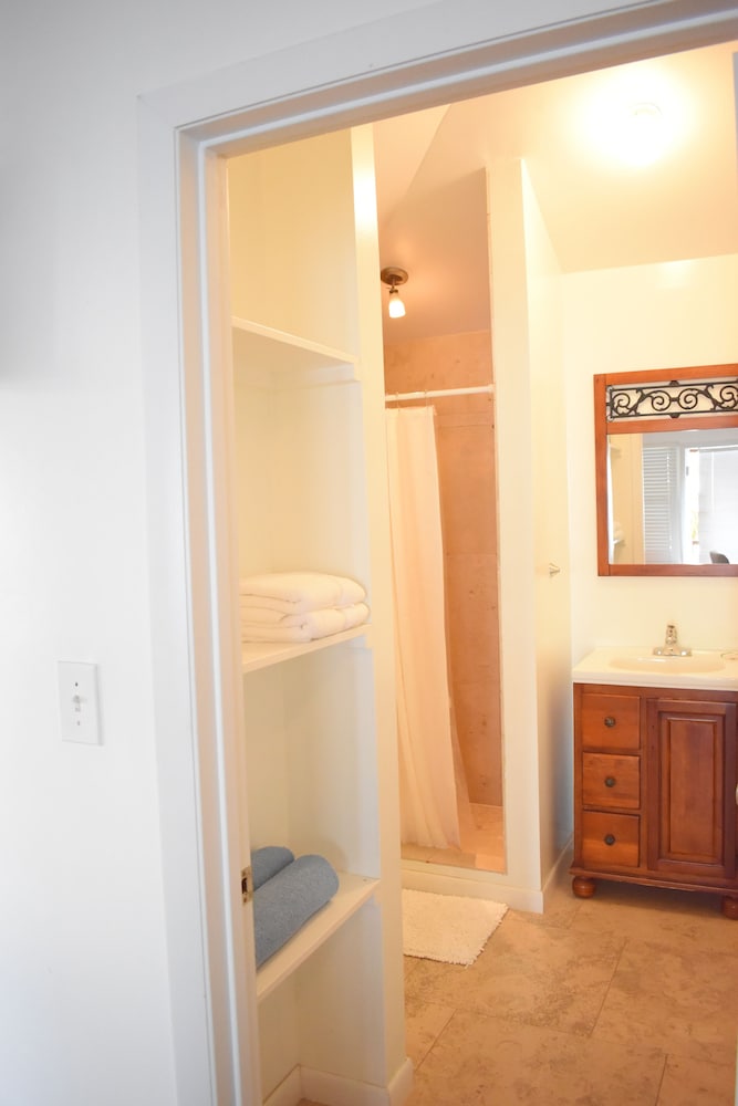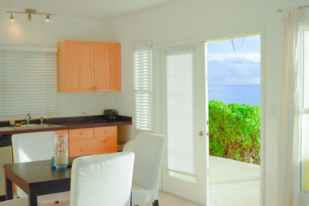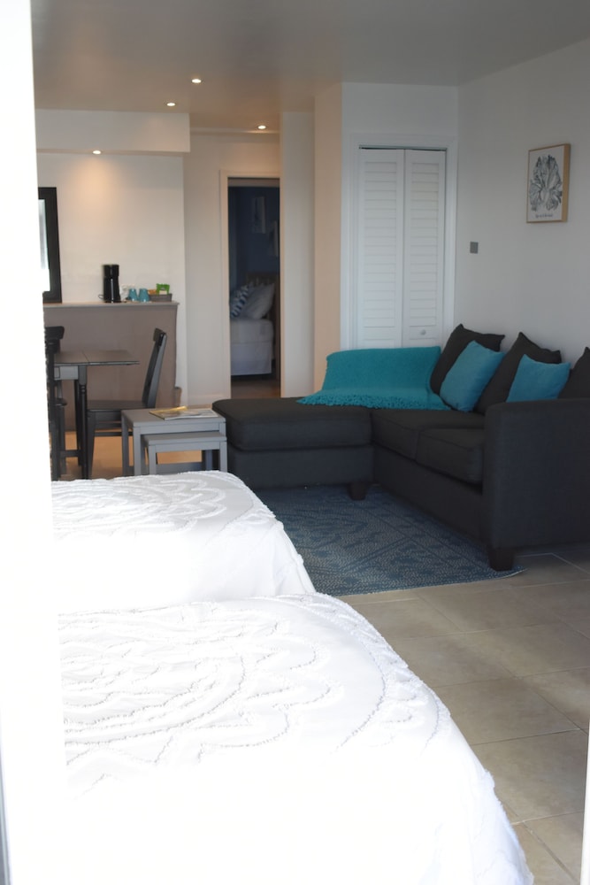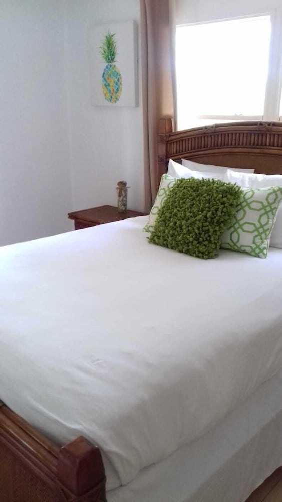 This place has everything going for it! The room was comfortable and plenty roomy. It overlooked the beach and had a large porch with loungers. The AC and hot water worked great.