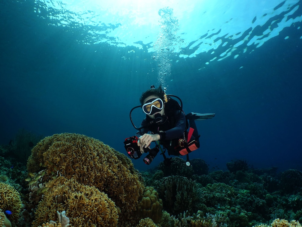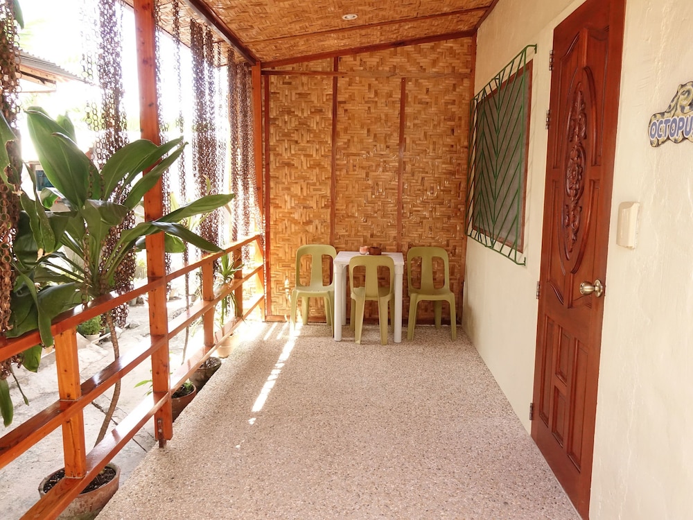Location is good - walking distance to beach area for snorkeling and near the sardine area. Short walk to main road where there are some small shops for cheap food and groceries. Dive shop is just 2 mins walk away.