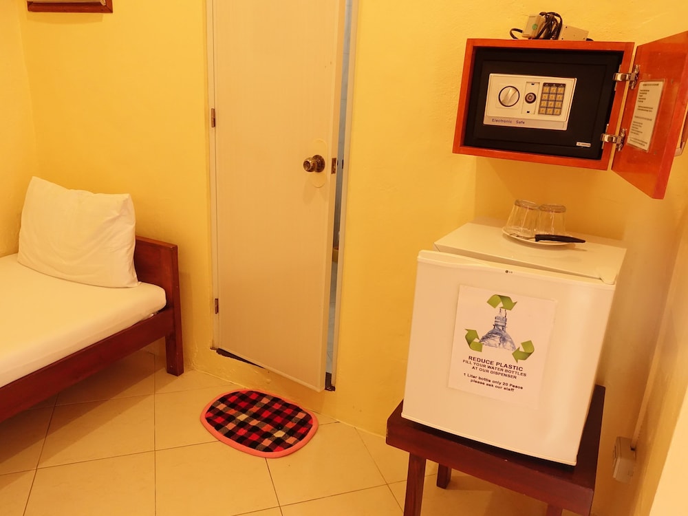 There is NO drinking water or kettle in room. Have to purchase refill at P20 per litre. Alternatively, free refill from the dive shop or P5 for 6 litre in shop along main road.