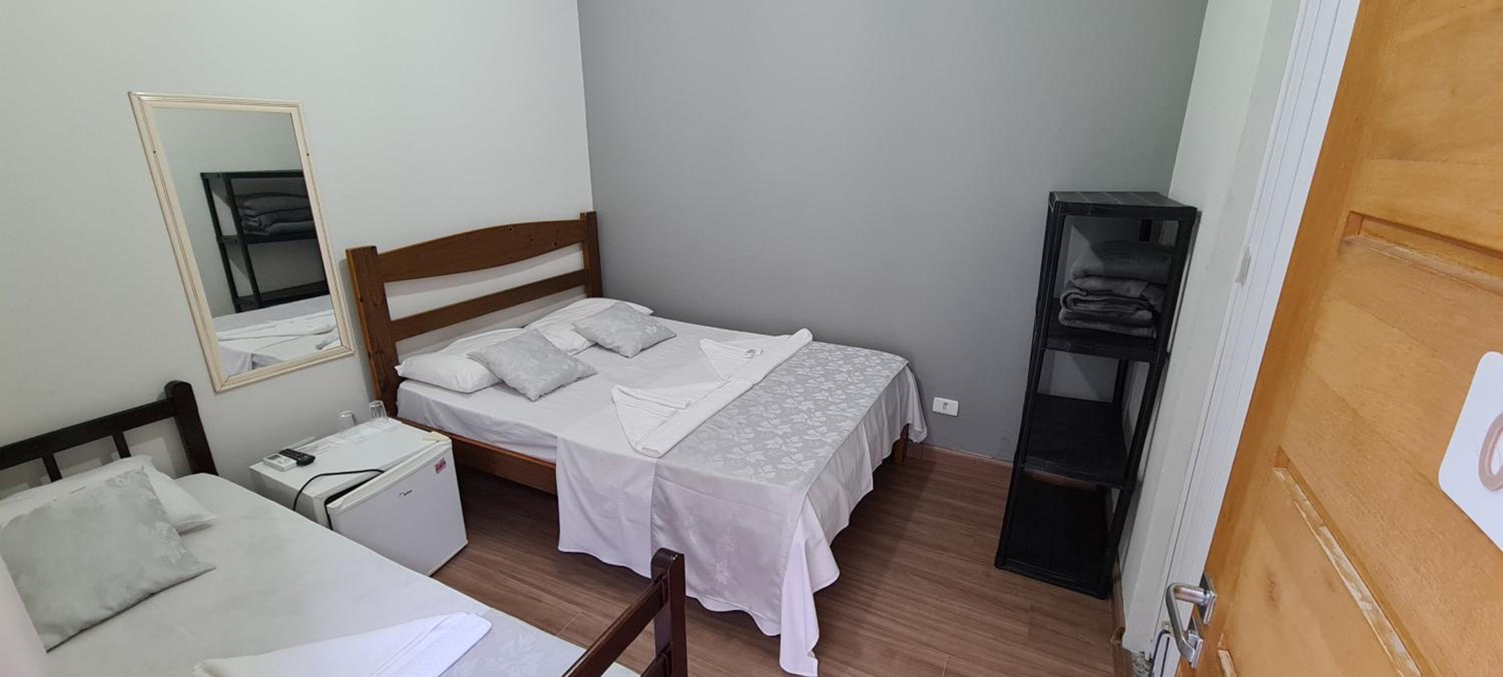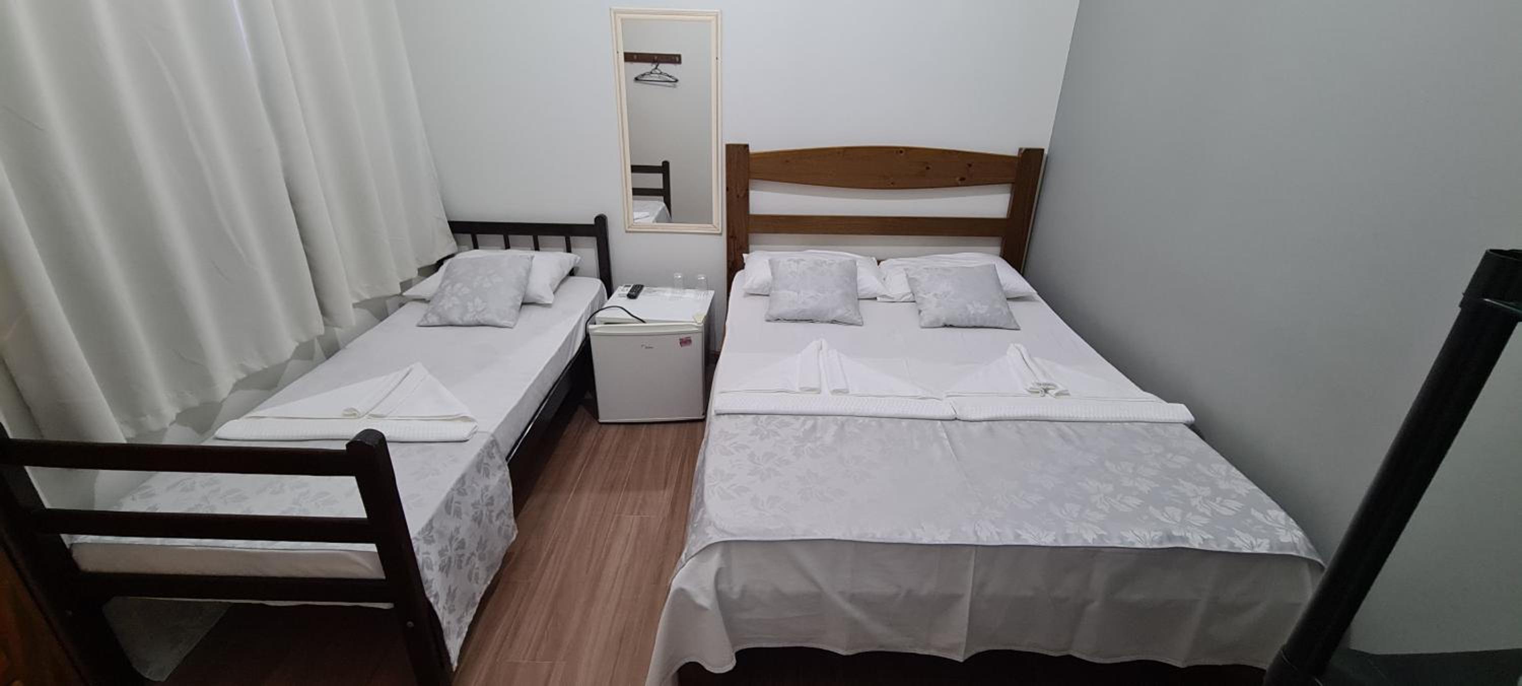 Quarto minusculo para 3 pessoas, colchão ruim.