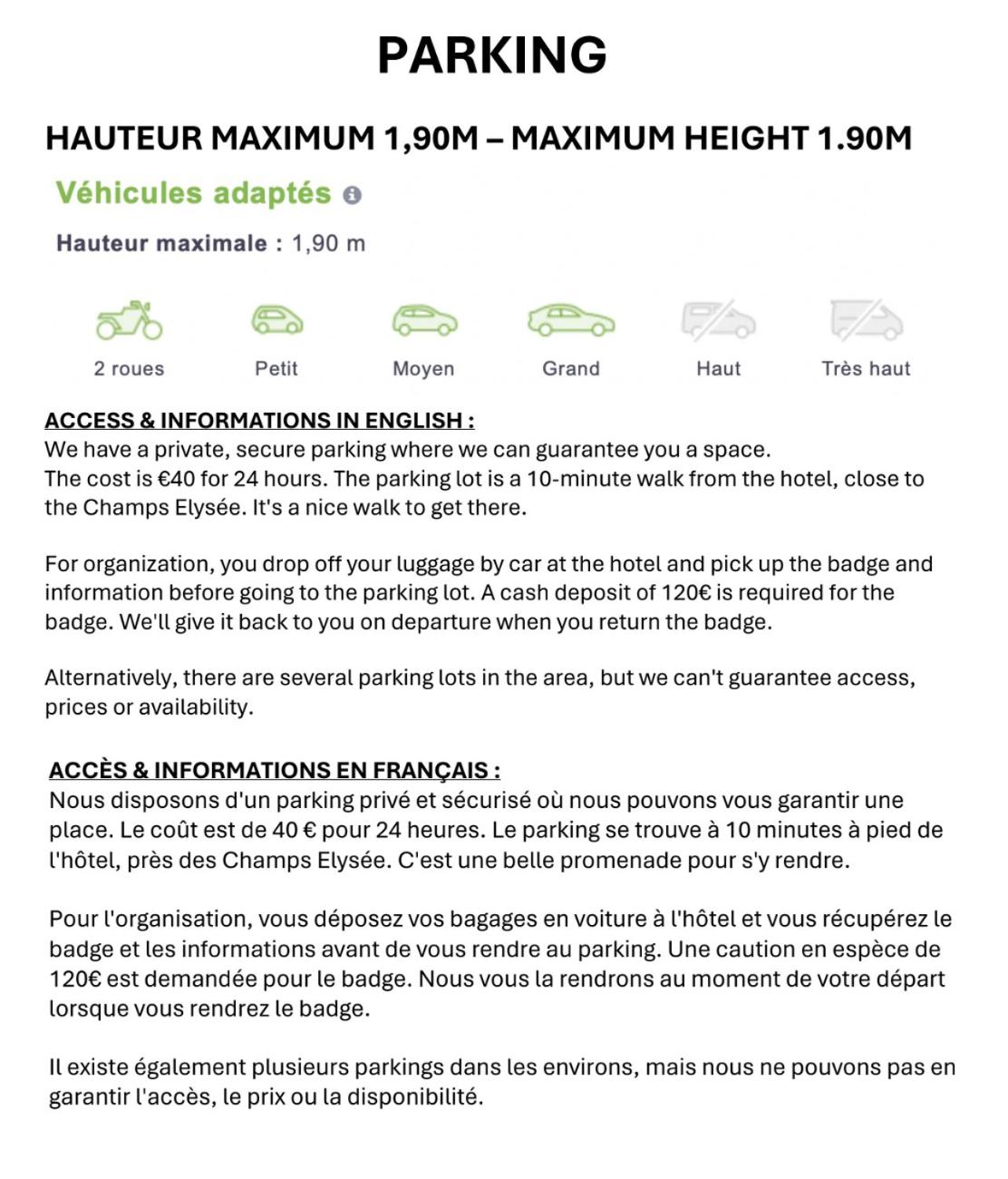 Private parking is available for EUR 40 per day.Guests are required to show a photo ID and credit card upon check-in. Please note that all Special Requests are subject to availability and additional charges may apply.