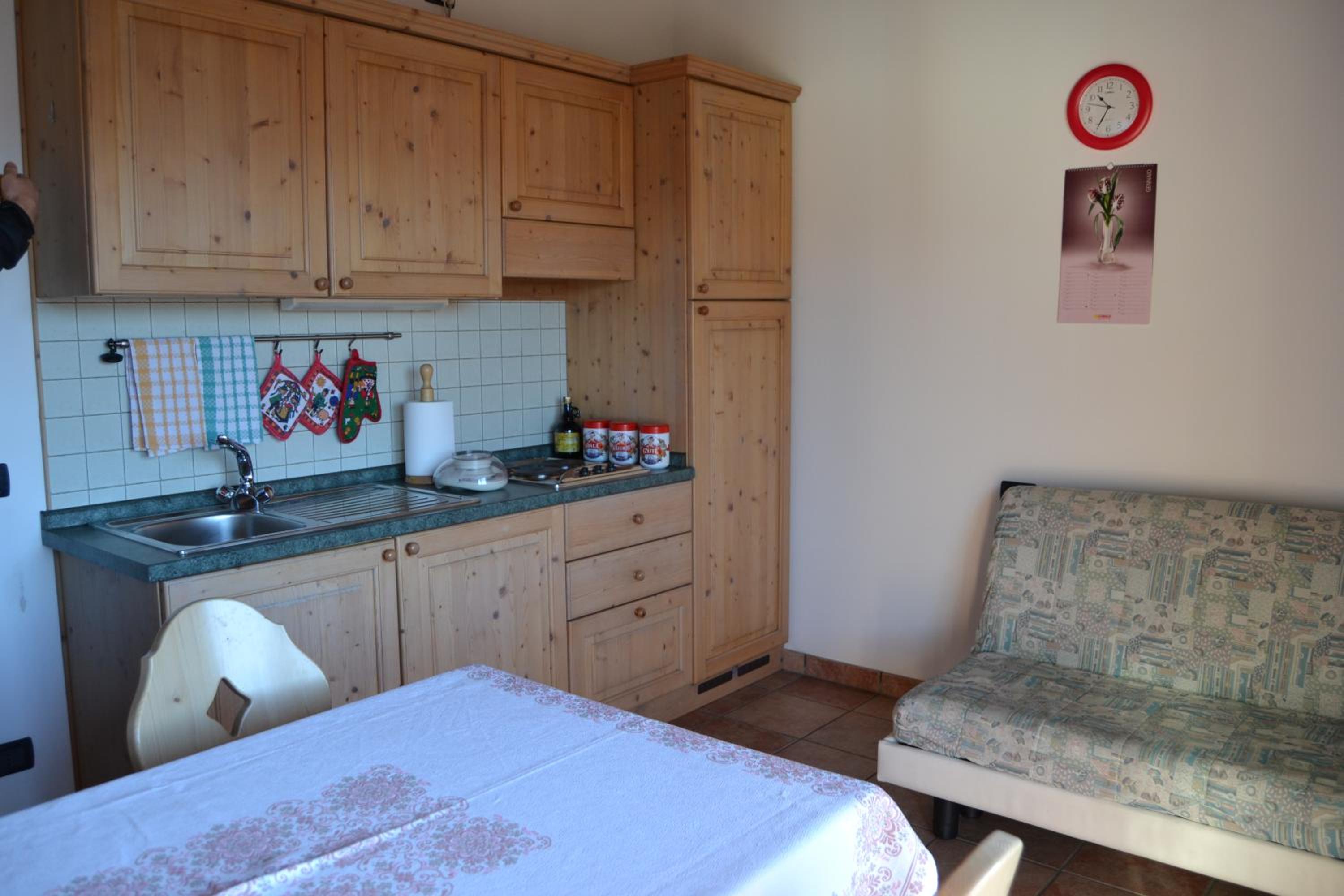 The place is super clean and it is in a quiet location, about 3 km from the beginning of the slopes. There is a bar with a shop inside the building. In front a tiny pub and on its left a small rosticceria where you can eat. Giongo has even a Sport shop about 50 Mt down the road. Massimiliano is super nice!