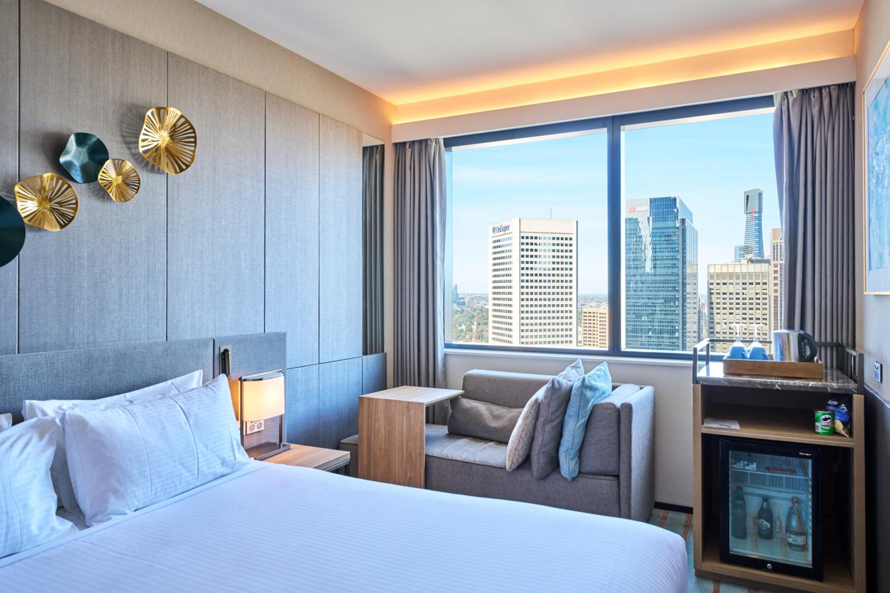 Novotel Melbourne Central offers well-appointed guest rooms with 55-inch Smart TVs, Chromecast, and free WiFi. The rooms also feature private bathrooms, air-conditioning, and 24-hour room service.