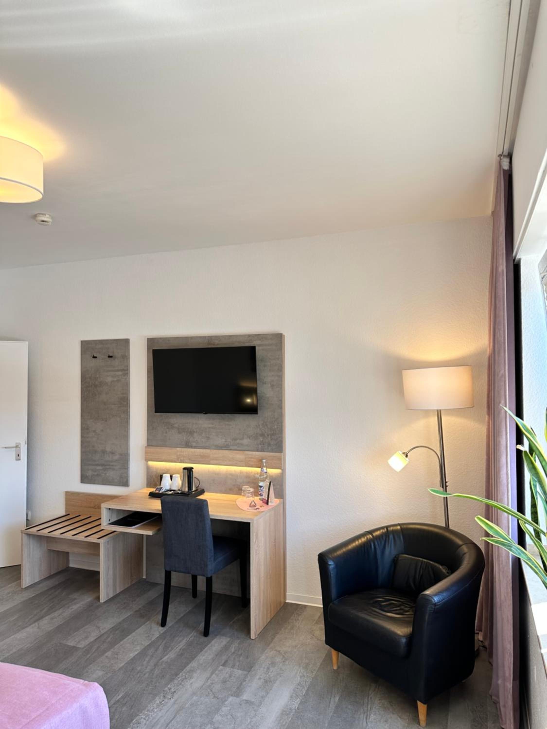 Das Zimmer war sehr hell und freundlich eingerichtet. Boxspringbett, Dusche sehr modern. Zentral gelegen an der Hauptstr.