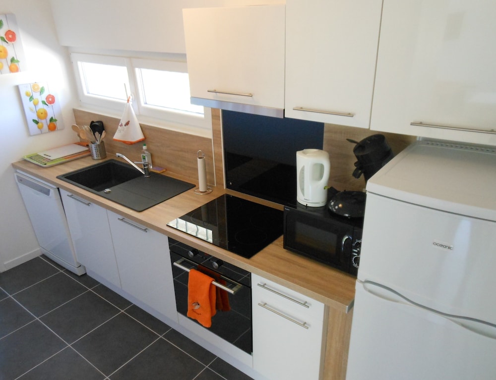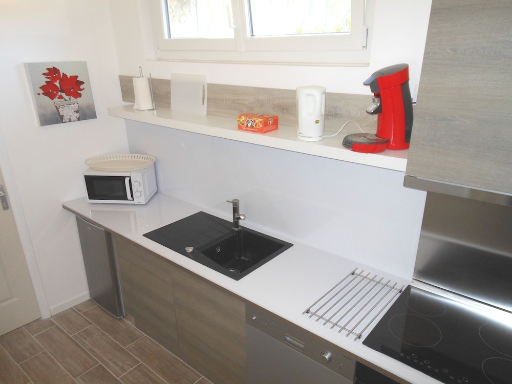 Het appartement heeft een erg goede uitrusting, ruim voldoende pannen, borden, bestek etc dus je kunt goed zelf koken. Het ontbijt is ok, wij hebben het twee keer gebruikt en zijn de andere dagen naar een goede bakker in Lagnes gereden.