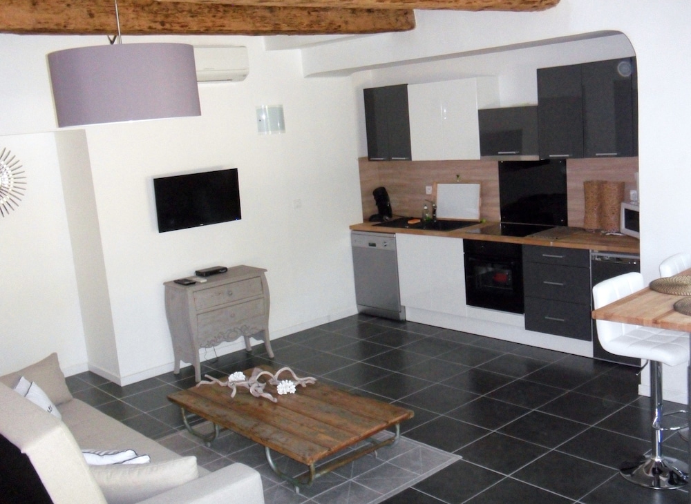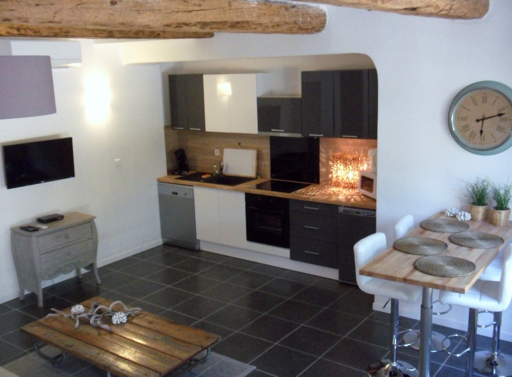 Ideal location for walking into town (10 mins downhill) and exploring the Luberon. We were in a ground floor apartment which gave a good opportunity to meet our neighbours at breakfast and evening meal,eating out on the patio. The entrance for cars is 60m uphill from the property. down a little track, but it is signposted. Beware sat nav, stay on main road and do not follow navigation for last 500m. When close it resets itself correctly.