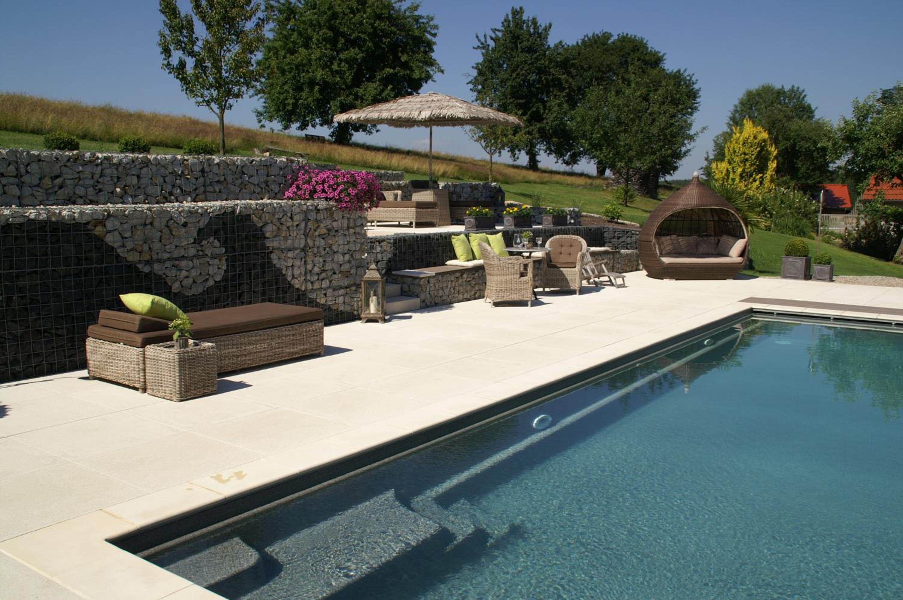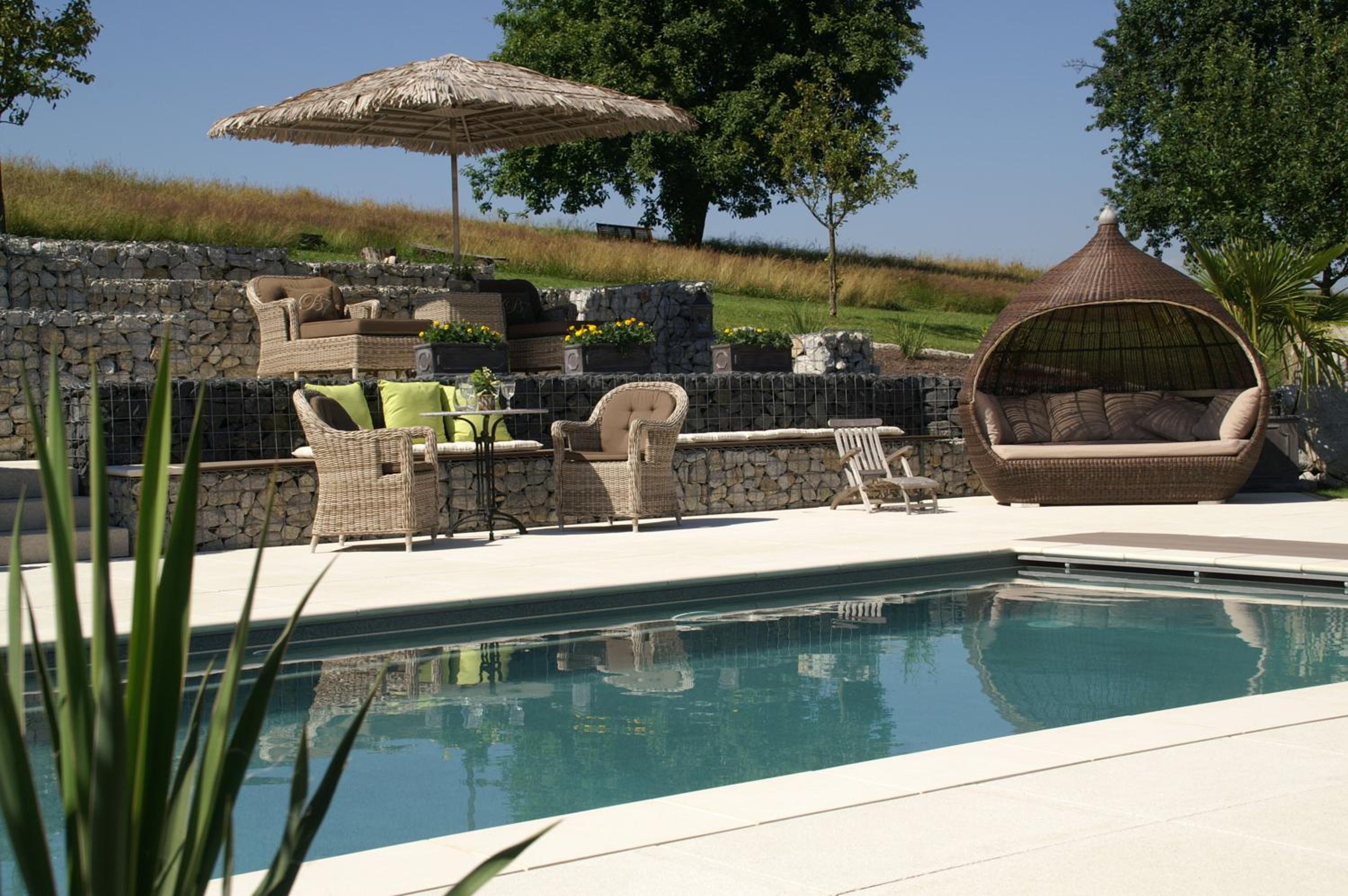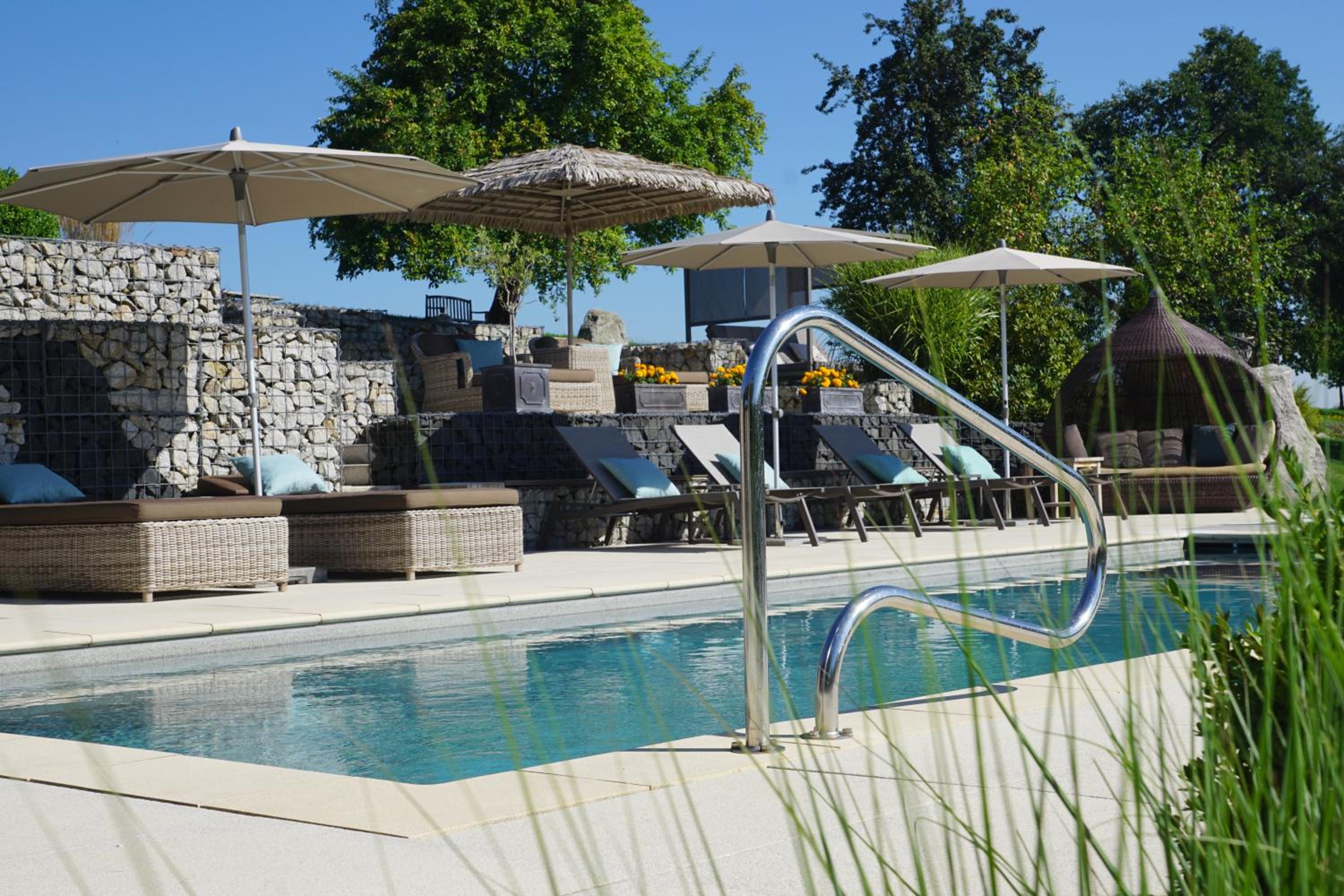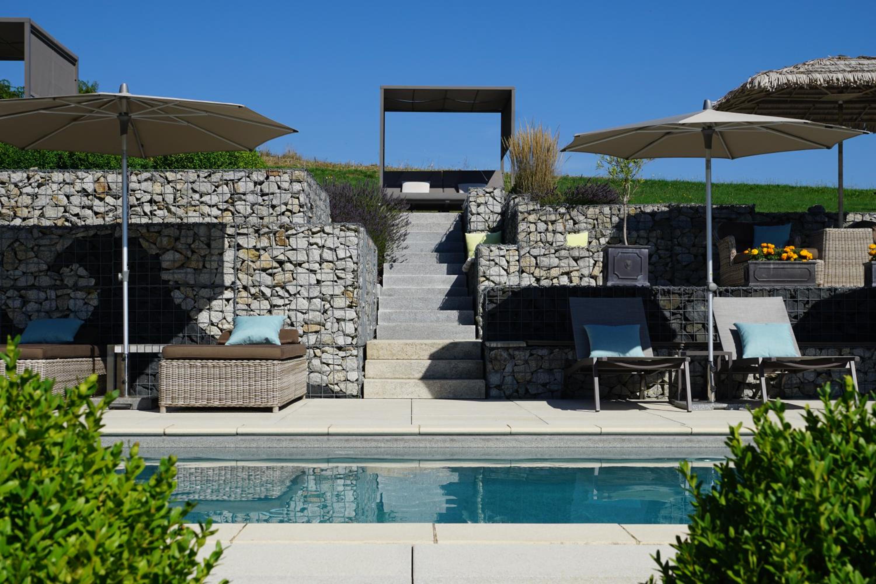 Enjoy a refreshing swim in the outdoor salt-water pool and relax in the spa area with sauna, steam room, and quiet area at Der Heindlhof.