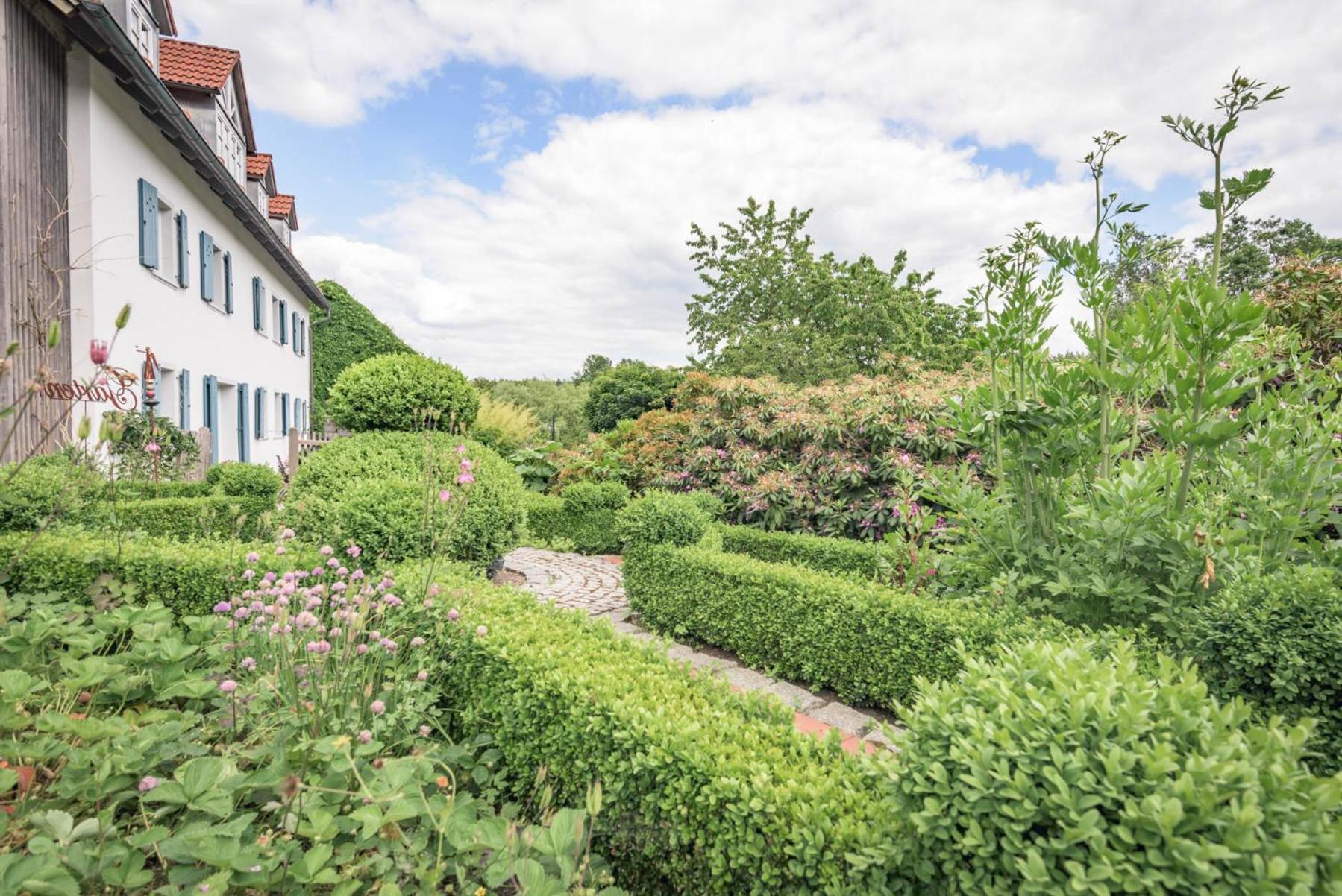 Unwind in the peaceful inner courtyard or on the garden terrace with a granite fountain. Explore hiking and cycling paths nearby, with the Stiftland Golf Course just 4 km away.